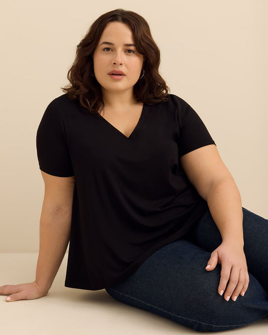 V-Neck Short Sleeve Tunic with Side Slits