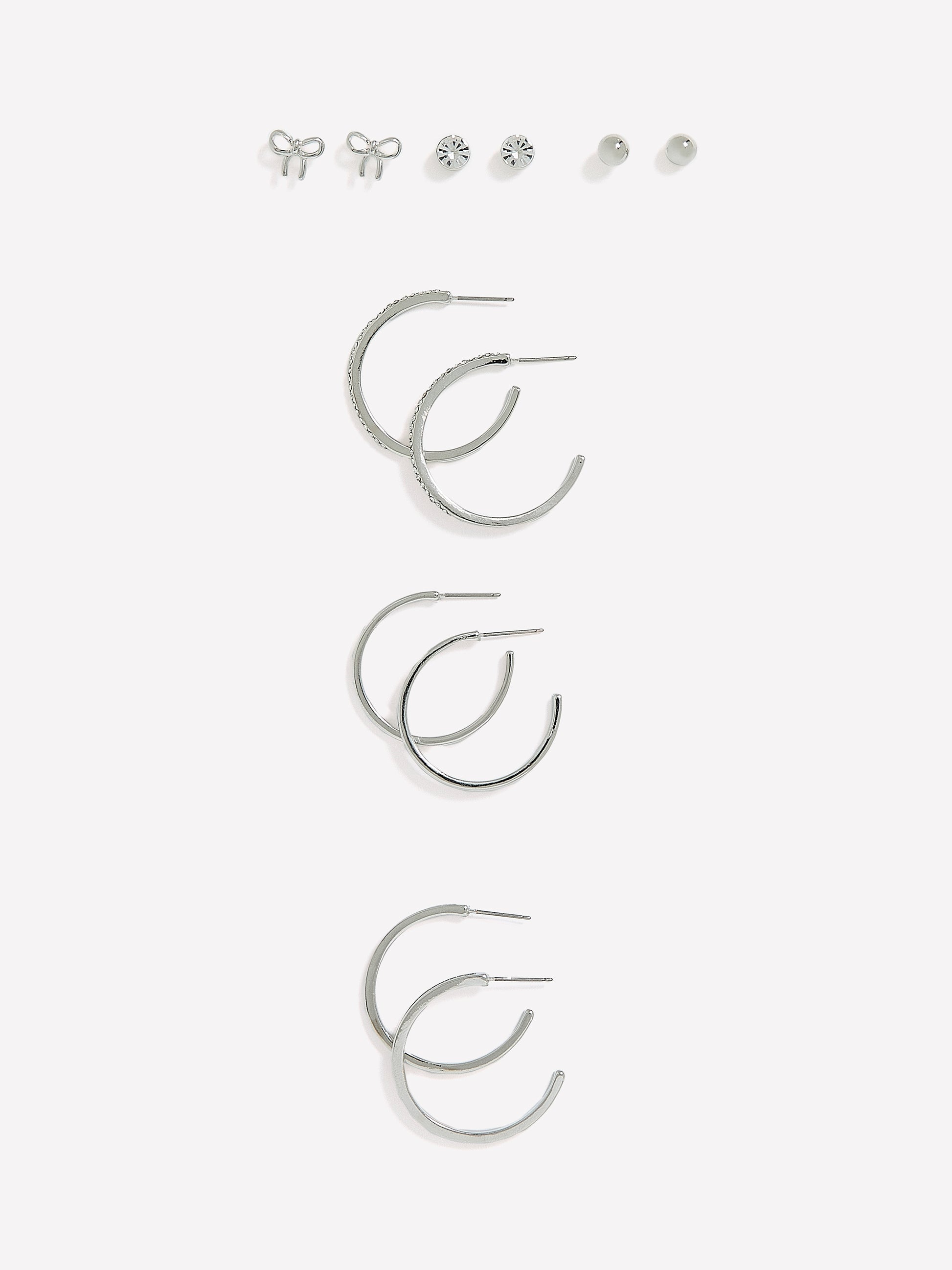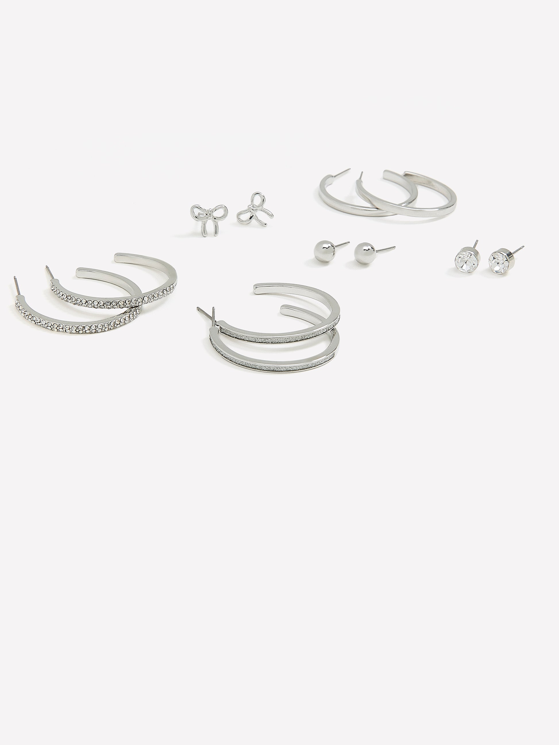 Paper Glitter Hoop and Stud Earrings, Set of 6