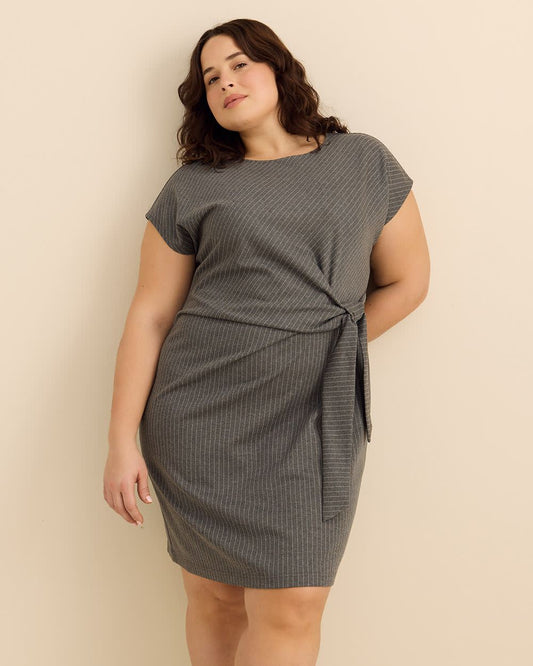 Gray Pinstripe Sleeveless Boat-Neck Top