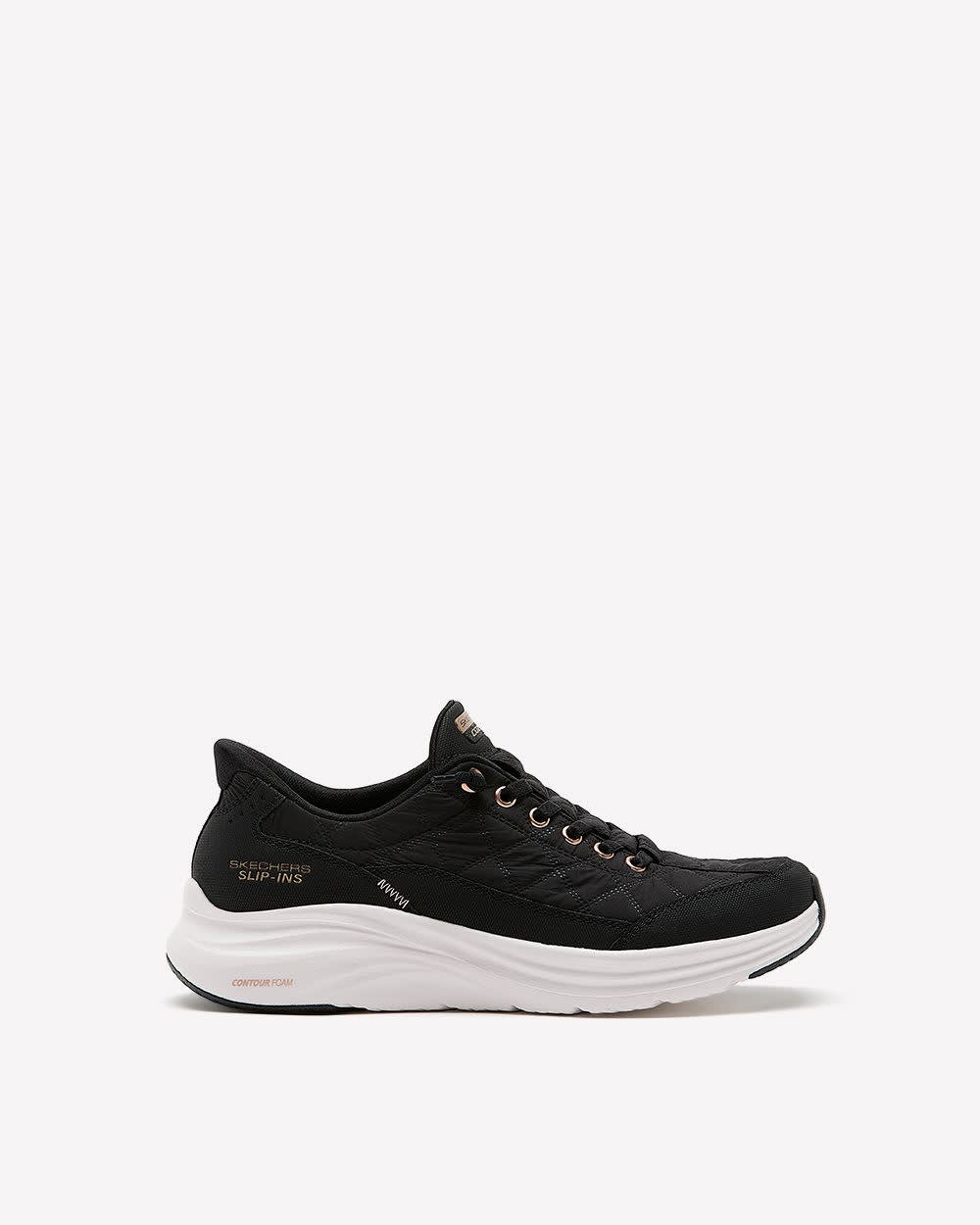 These slip-ins by Skechers have been designed for wider feet to provide all-day long comfort. Featuring a quilted fabric and duraleather upper, laces that never come untied, and a cushioned insole for ultimate comfort and style. Features - Fabric and duraleather upper - Bungee laces - Memory foam cushioned insole - Contour foam midsole - Wide width - Heel height: 1.33 in About Skechers Pick from a curated collection of stylish and comfortable wide-width sneakers and walking shoes from Skechers - it's a step in the right direction.