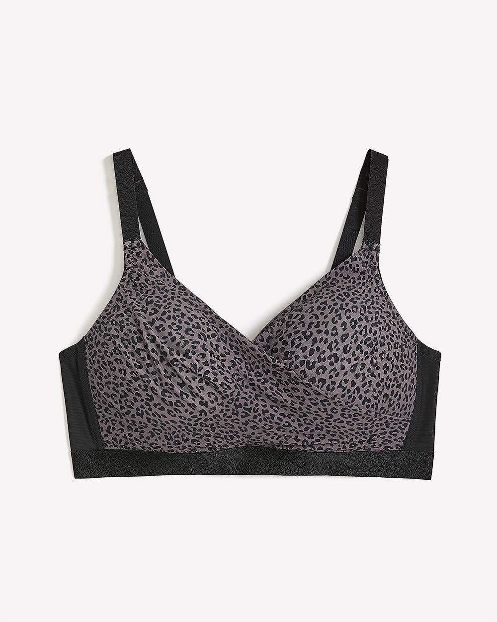 Relax in comfort and style with this plus size wirefree padded lounge bra. Whatever your plans for the day, this crisscrossing lounge bra is lightweight, soft on the skin and provides good support. Plus, its bold cheetah print brings a hint of personality to your lingerie drawer.