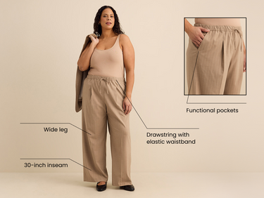 Chic and comfortable go hand in hand with these plus-size striped woven pants. Designed in a trendy wide-leg that elevates your silhouette and topped with a comfortable elastic waistband, these versatile pants seamlessly transitions from formal to casual.