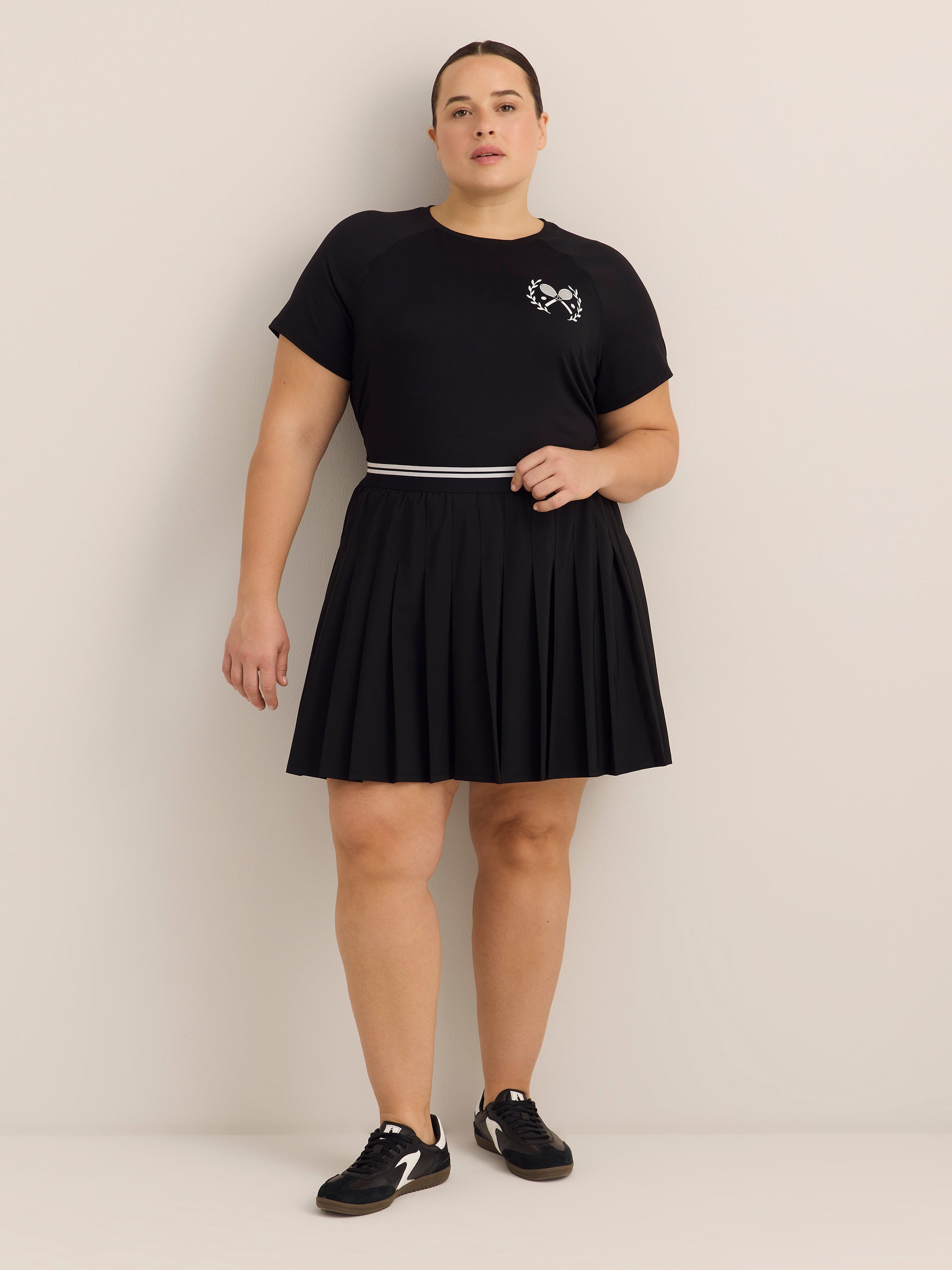 This plus-size active skort with built-in undershorts and pockets features a versatile pleated design, perfect for your golf games and your tennis matches. A definite summer must-have.