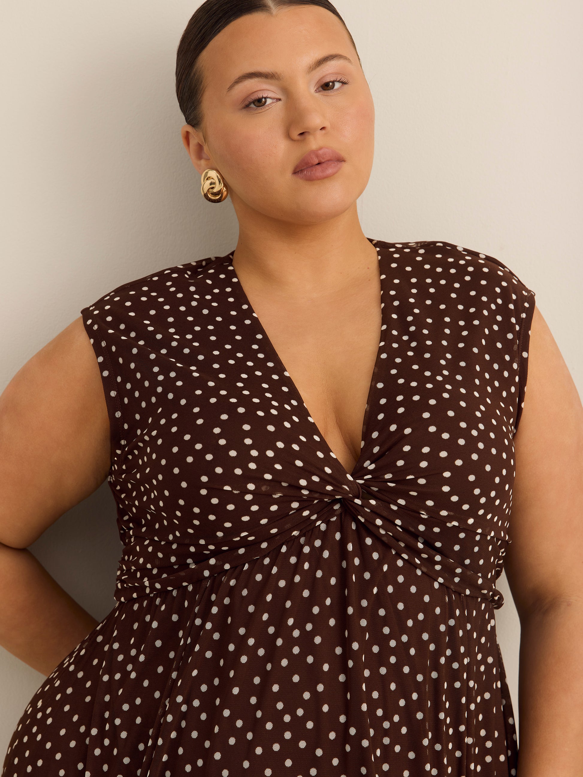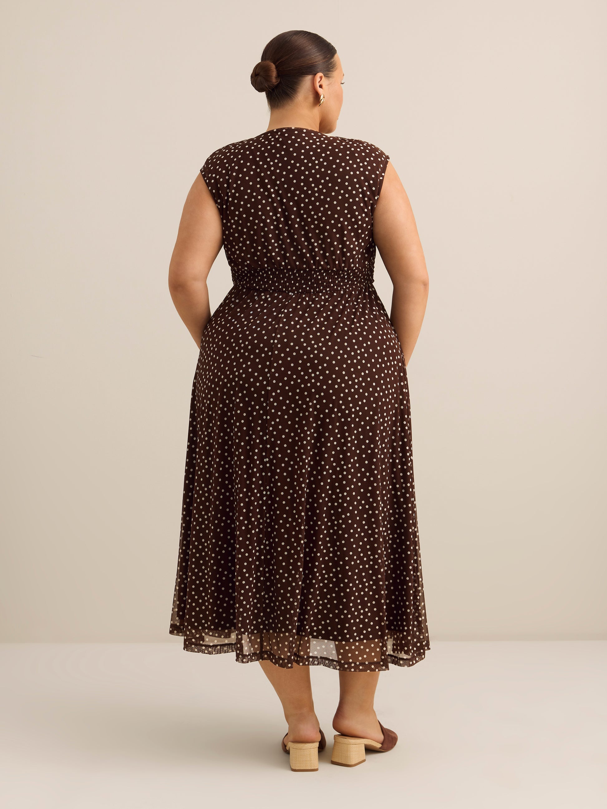 Light, flattering, and made to celebrate your shape. This plus-size mesh maxi dress features a twisted V-neck and a softly defined waist that enhances your curves without feeling tight. A piece designed to move with you—and make you feel confident from every angle.