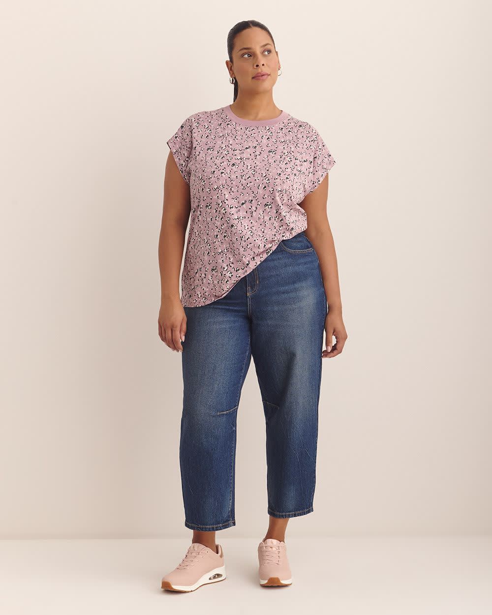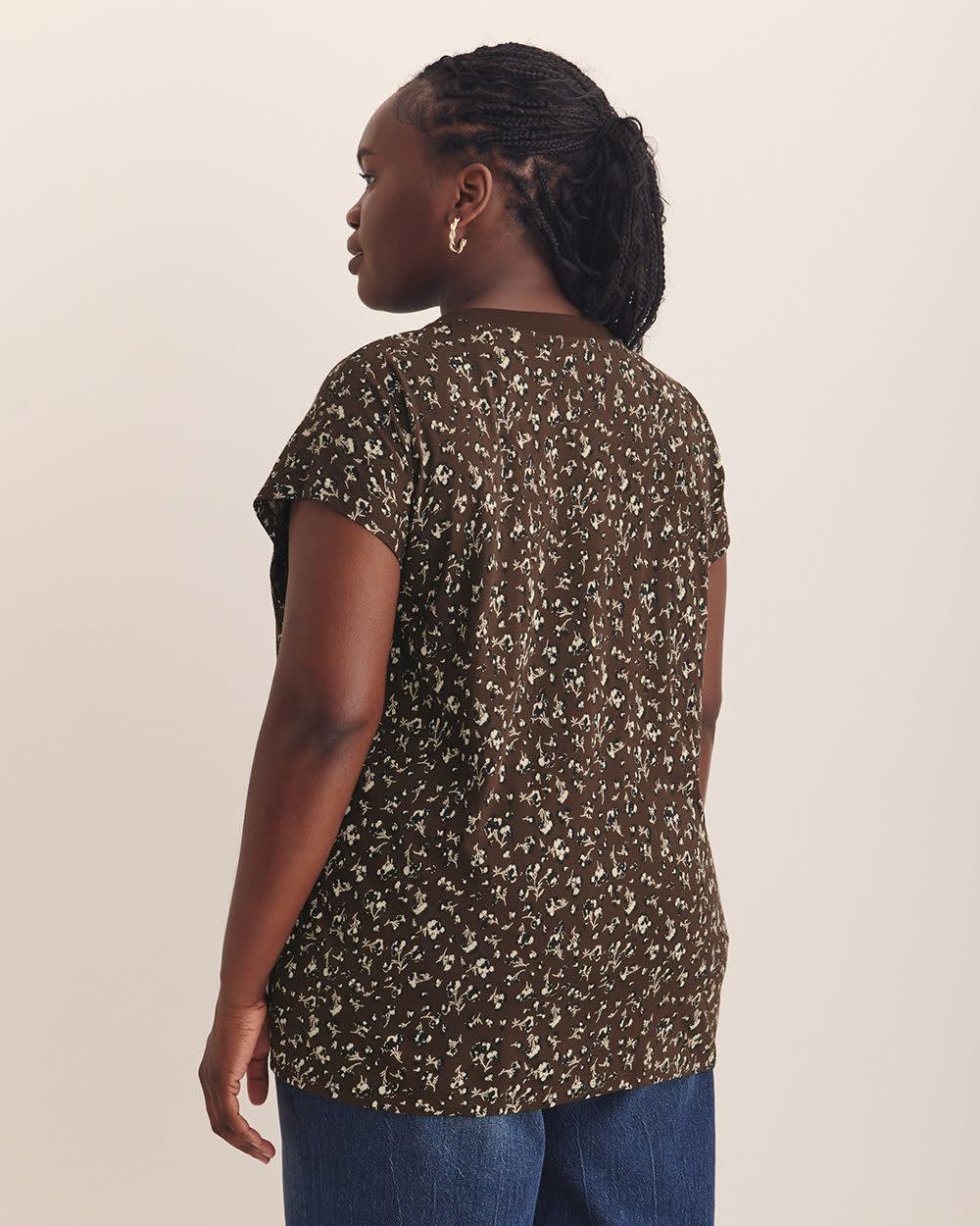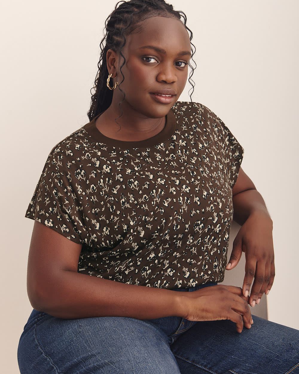 Want to feel comfy while looking good? With its extended sleeves, soft knit finish and versatile choice of colours and beautiful prints, this plus-size knit top has everything you need for a cozy and stylish wear. Features - Soft knit jersey - Crewneck - Short extended sleeves - Length: 28.25 in