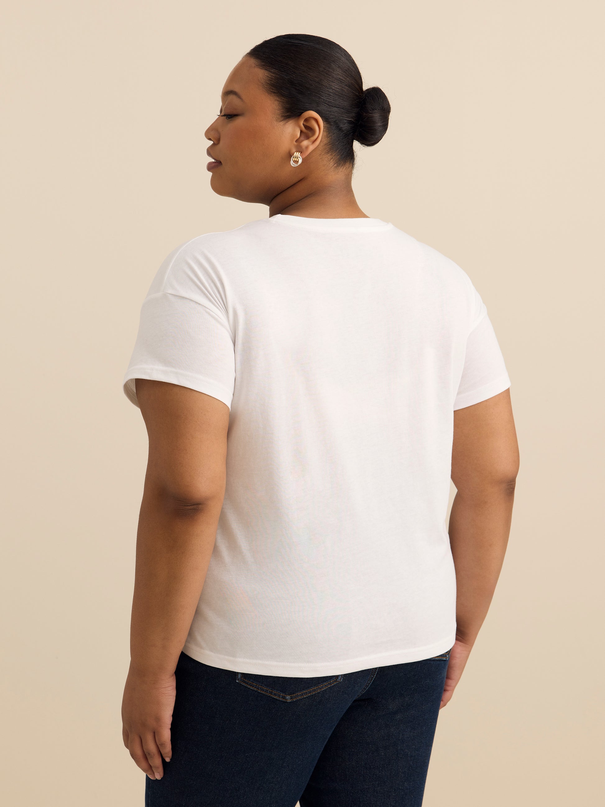 ONLINE EXCLUSIVE. Cute, comfy, and full of character. This plus-size boxy tee brings a playful twist with its Mickey or Stitch print and soft, stretchy feel-perfect for easygoing days and feel-good style.
