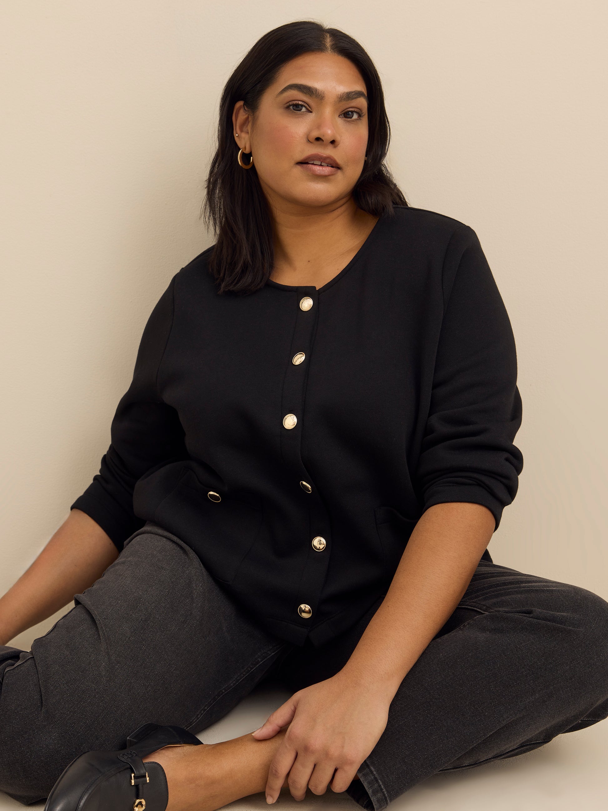 Add texture to your look with this plus-size short cardigan, the perfect layering piece to wear over your favourite top.
