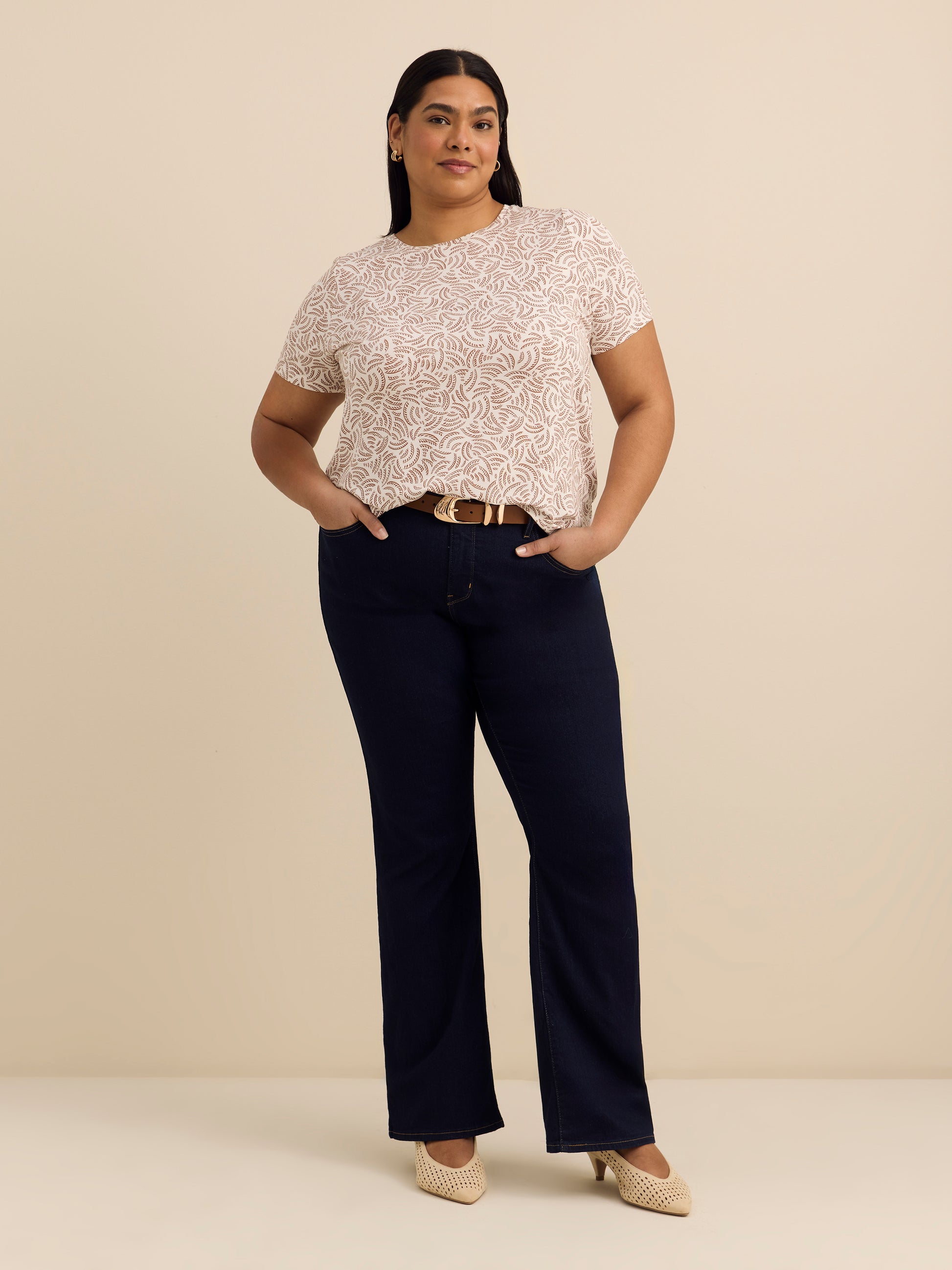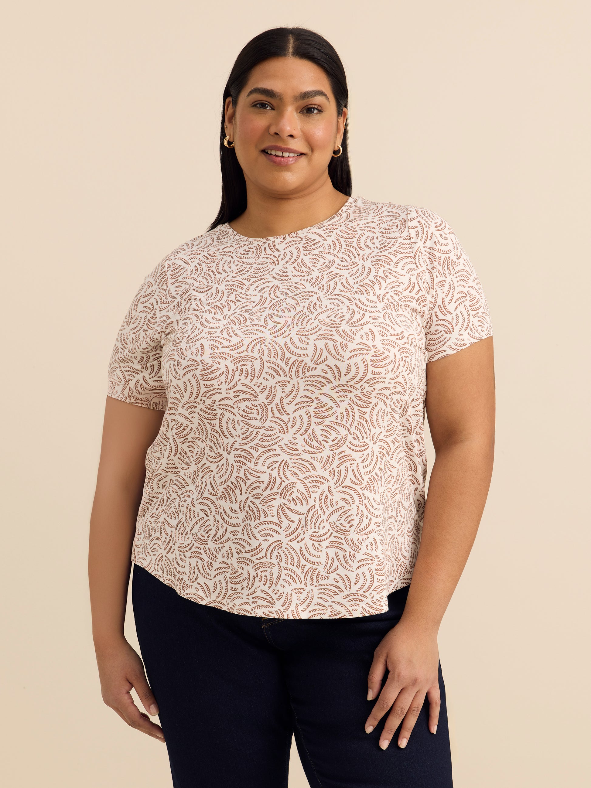 This ultra versatile plus size modern-fit t-shirt will quickly become a favourite piece in your wardrobe. With its soft jersey finish, it will pair wonderfully with your high-waisted skirts, jeans and leggings.