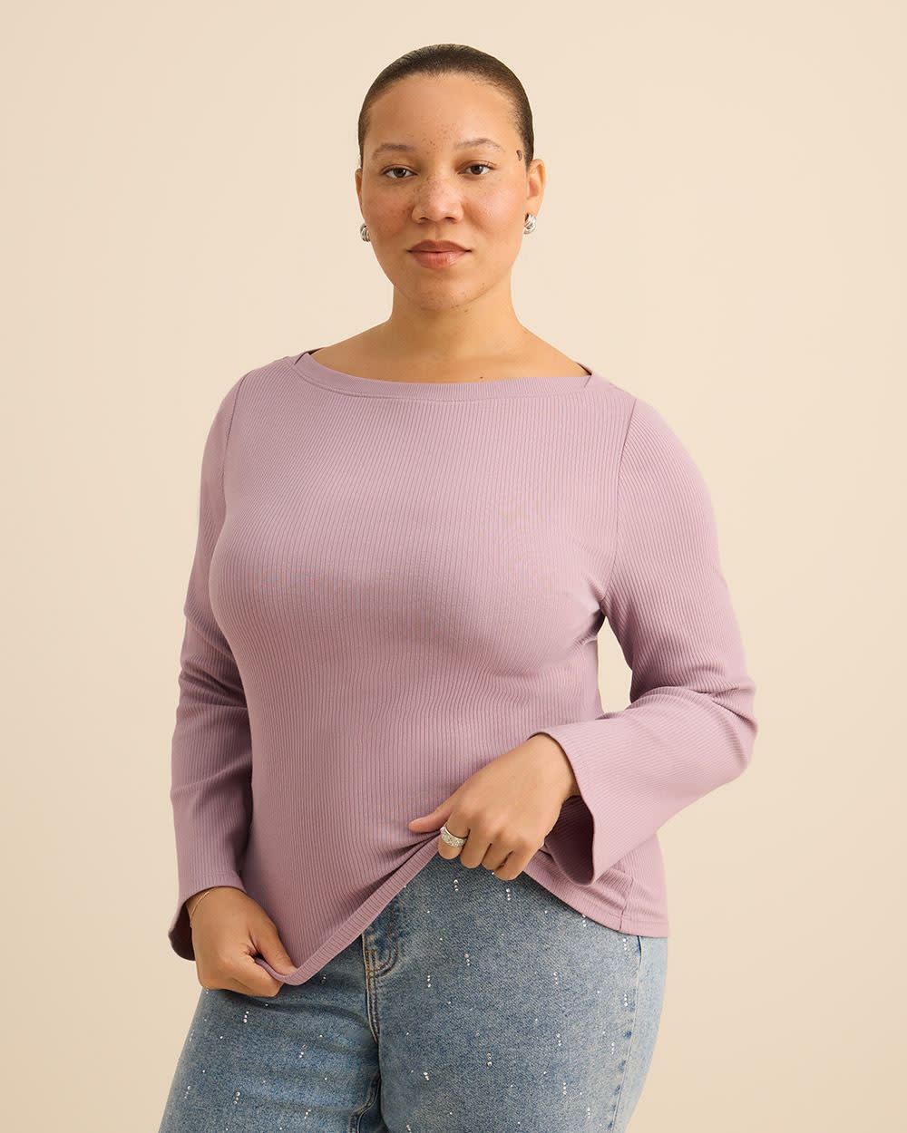 Rib Knit Boat Neck Long-Sleeve Top - Addition Elle