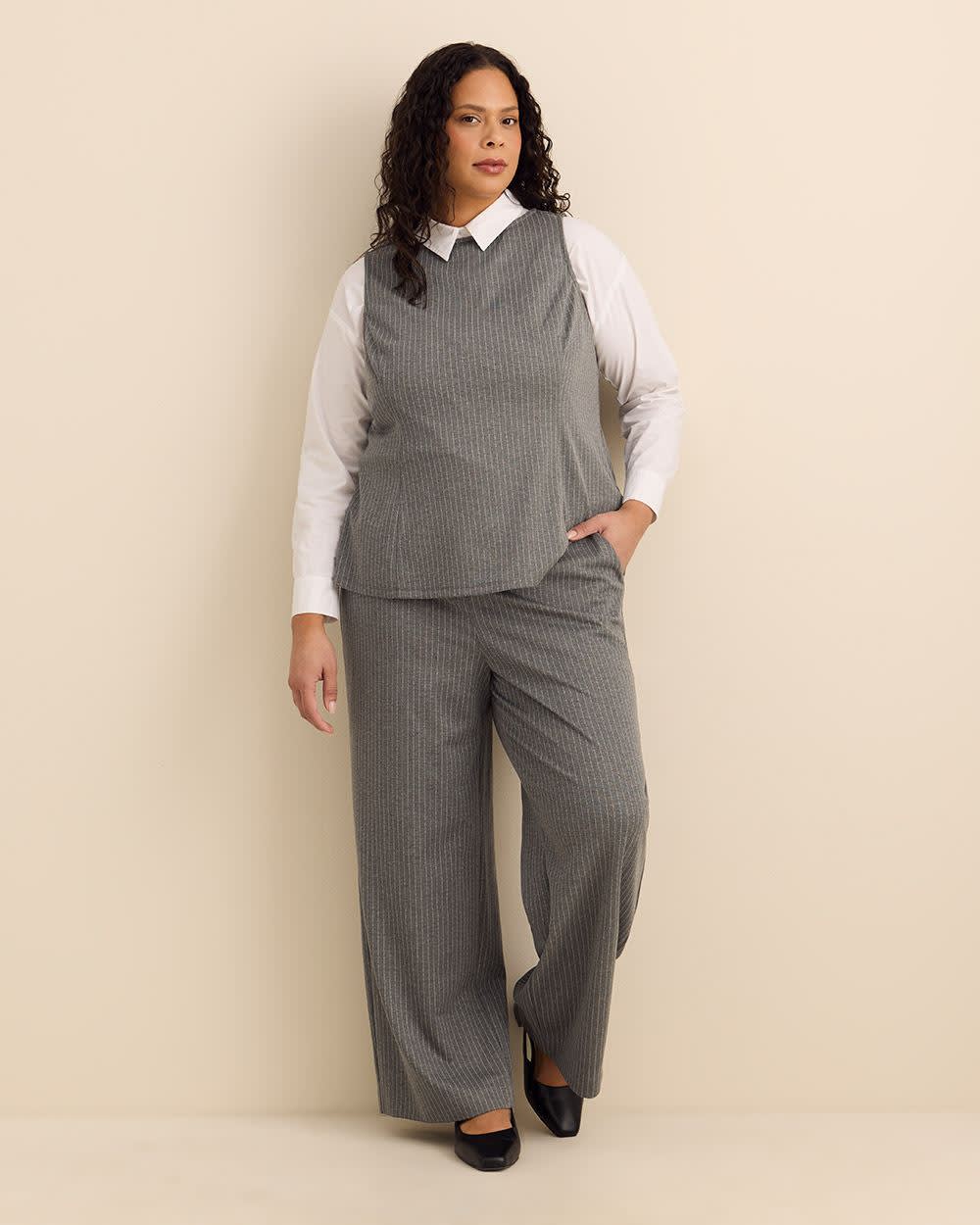 "Undeniably chic, these plus-size wide-leg stretch pants are sure to attract compliments. Cut from soft Ponte de Roma and topped with a flat elastic waistband for a silhouette that's always flattering, they are perfect to wear with heels and a fitted top for a truly on-trend outfit. Features - Soft Ponte de Roma finish - Striped pattern - Wide leg - Pull-on design - Flat waistband in the front - Elastic waistband in the back - Front slanted pockets - Inseam: 30 in"