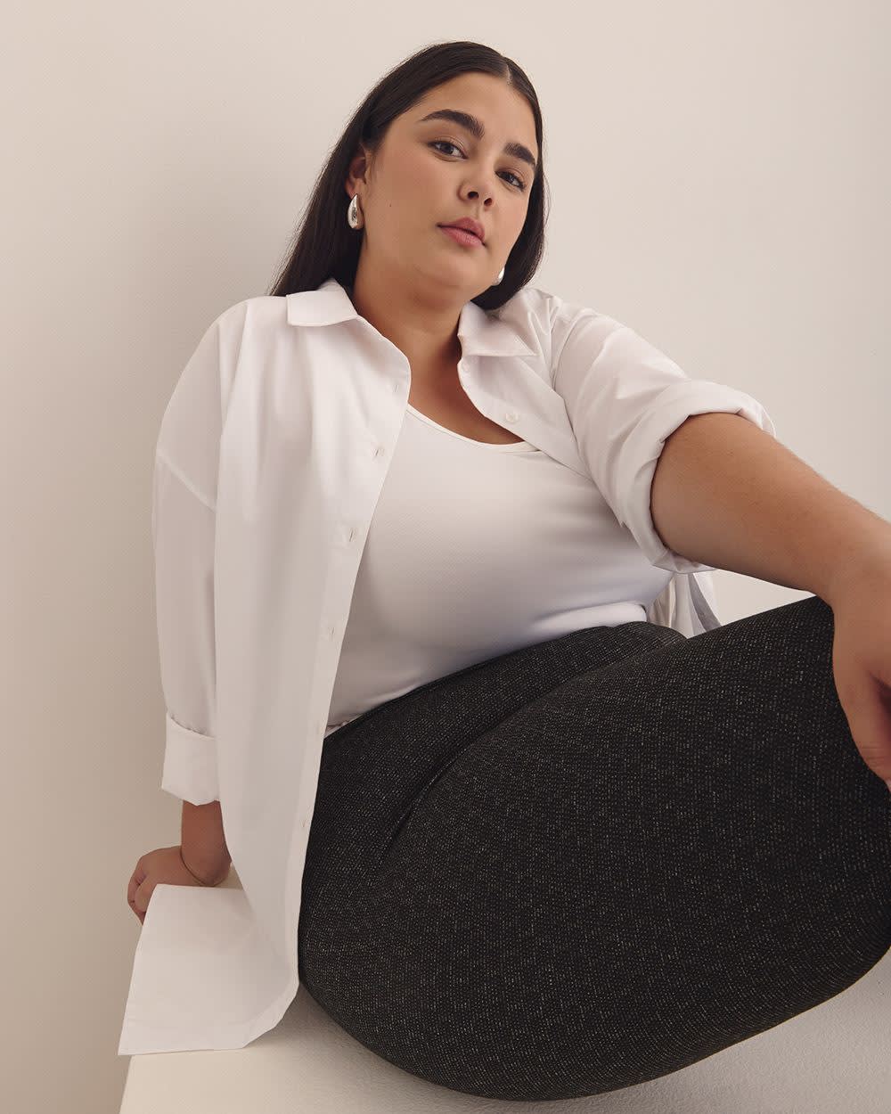 Versatile yet super fashionable, these black animal-textured plus-size leggings pair perfectly with any top and tunic. So trendy! Features - Stretch textured finish - All-over animal pattern - Pull-on elastic waistband - Inseam: 28 in