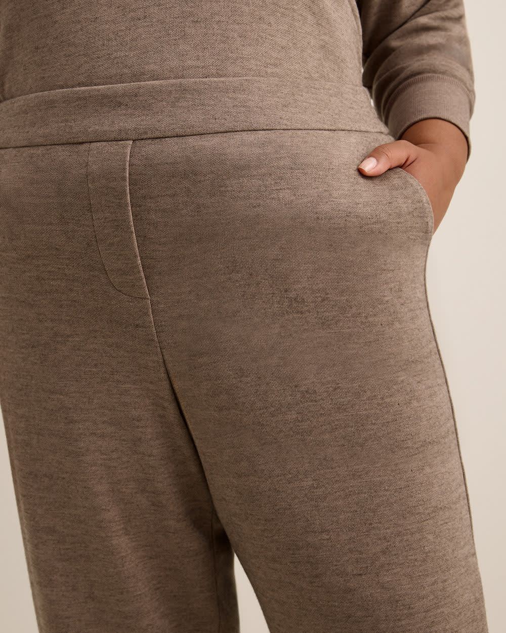 Slip into comfort and style with these plus-size pull-on barrel-leg knit pants. Featuring a sleek waistband and soft stretch fabric, they bring a modern twist to everyday ease.