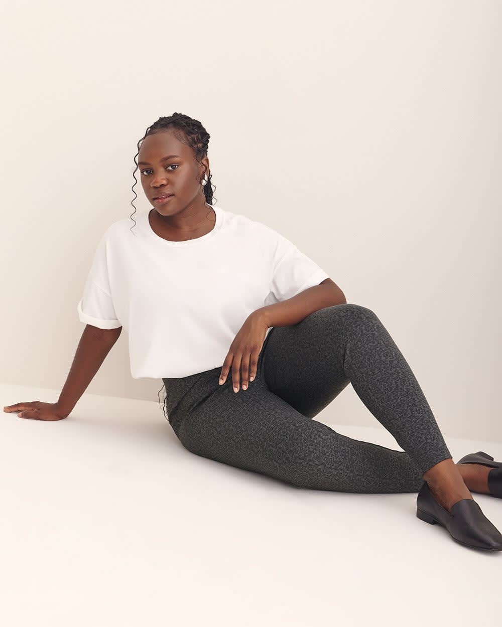 This season, add some extra flair to your casual outfits with these comfortable plus-size leggings fashioned with a textured finish that looks as great as it feels. A great way to bring a spark of personalized style to your knits, tunics and t-shirts.