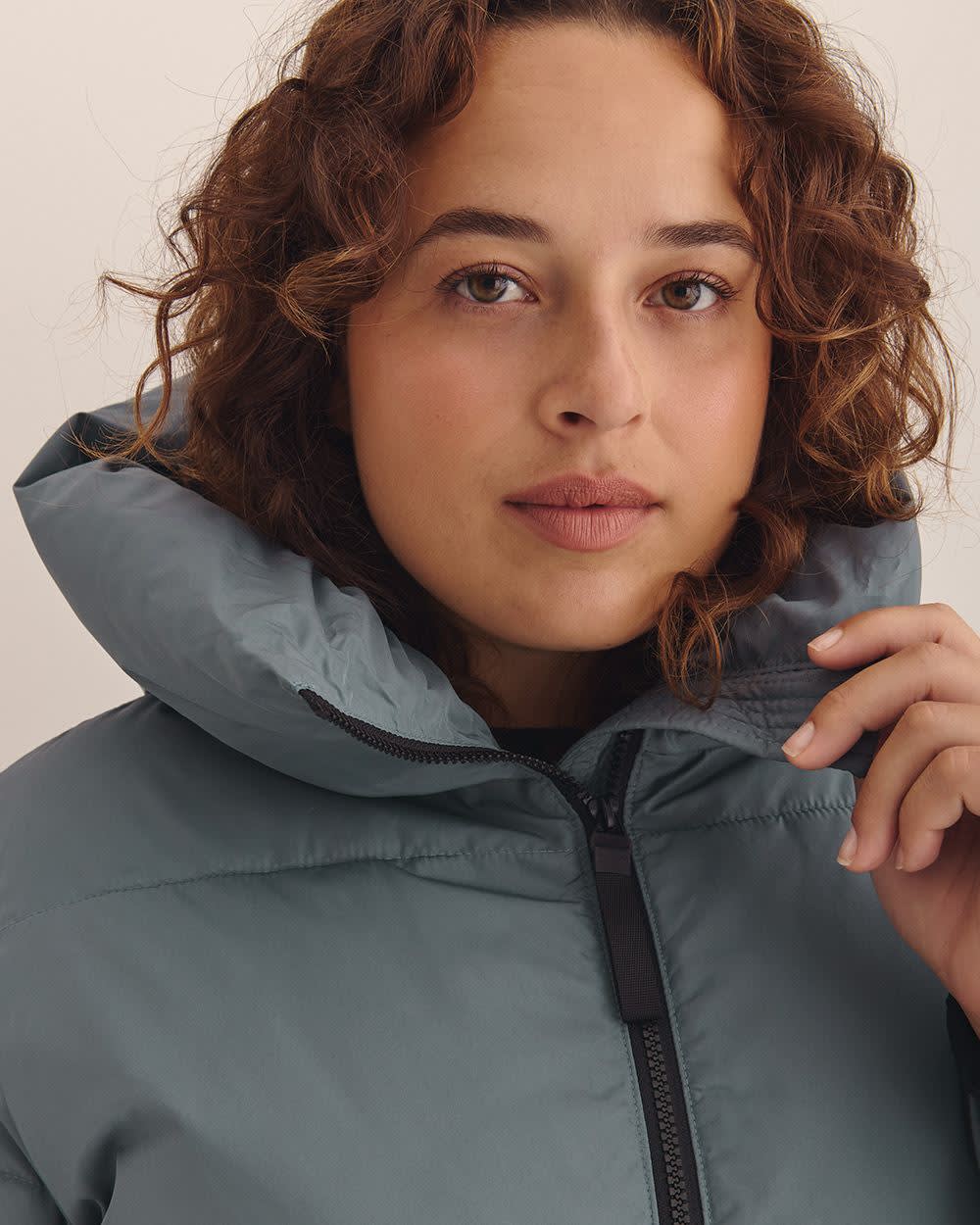 - Water-repellent puffer finish