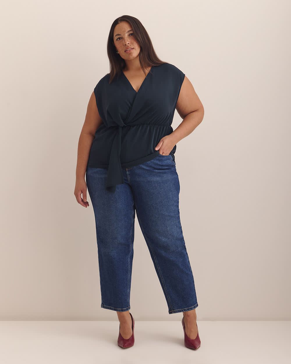 Extended-Sleeve V-Neck Knotted Blouse - Addition Elle