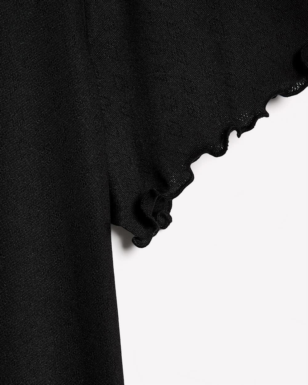 Crafted in a lightweight heart pointelle finish, this crewneck pyjama top adorned with a feminine lettuce edges on the short sleeves ensure ultimate comfort and style.