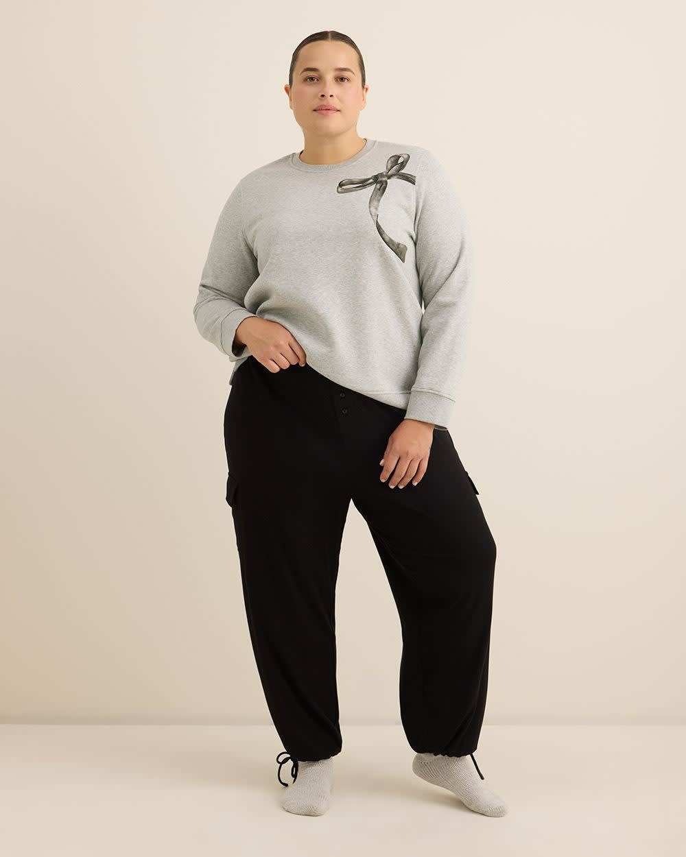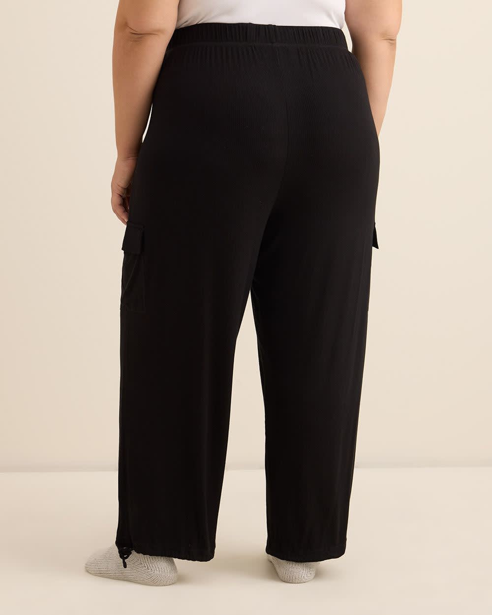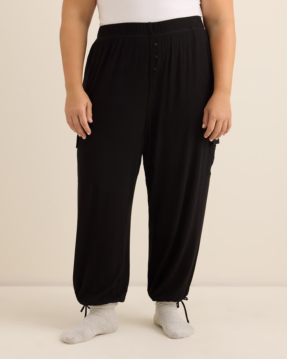 Relax in style with these plus-size ribbed knit pyjama cargo pants. Soft and warm with handy pockets and a drawcord hem, they bring laid-back comfort to your downtime.