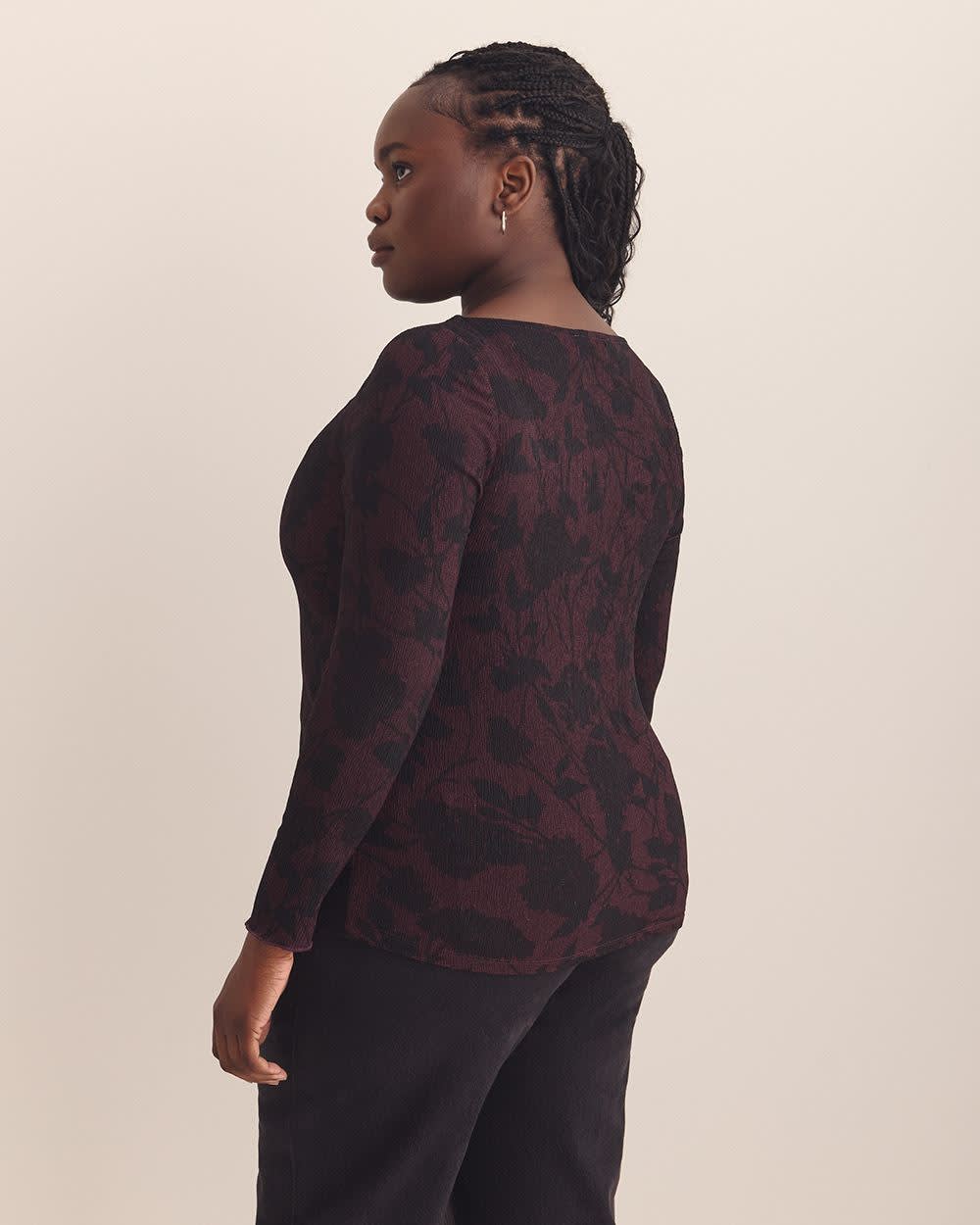 This plus-size boat-neck knit top is the ultimate everyday wear with its classic features and feminine lettuce-edge sleeves. Plus it's the perfect undershirt to highlight your favorite sweater, blazer or vest when temperatures drop.