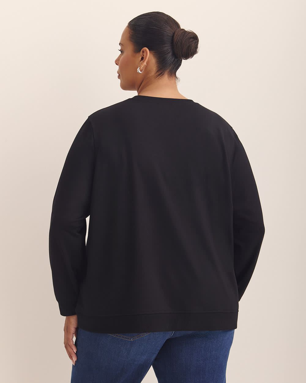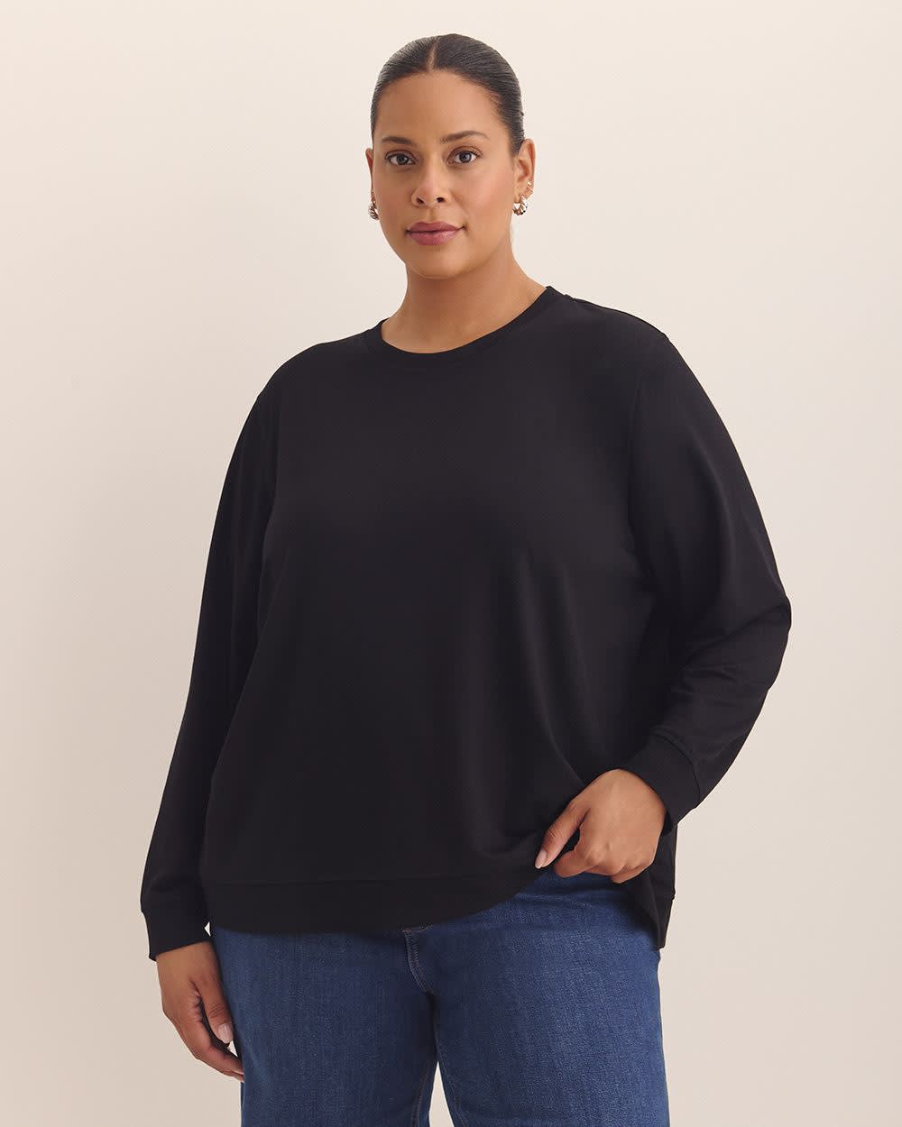 Fashioned with classic features like a crewneck and ribbed details, this plus-size boyfriend-fit sweatshirt is perfect to pair with leggings on casual days when you want to be comfortable without compromising your style.