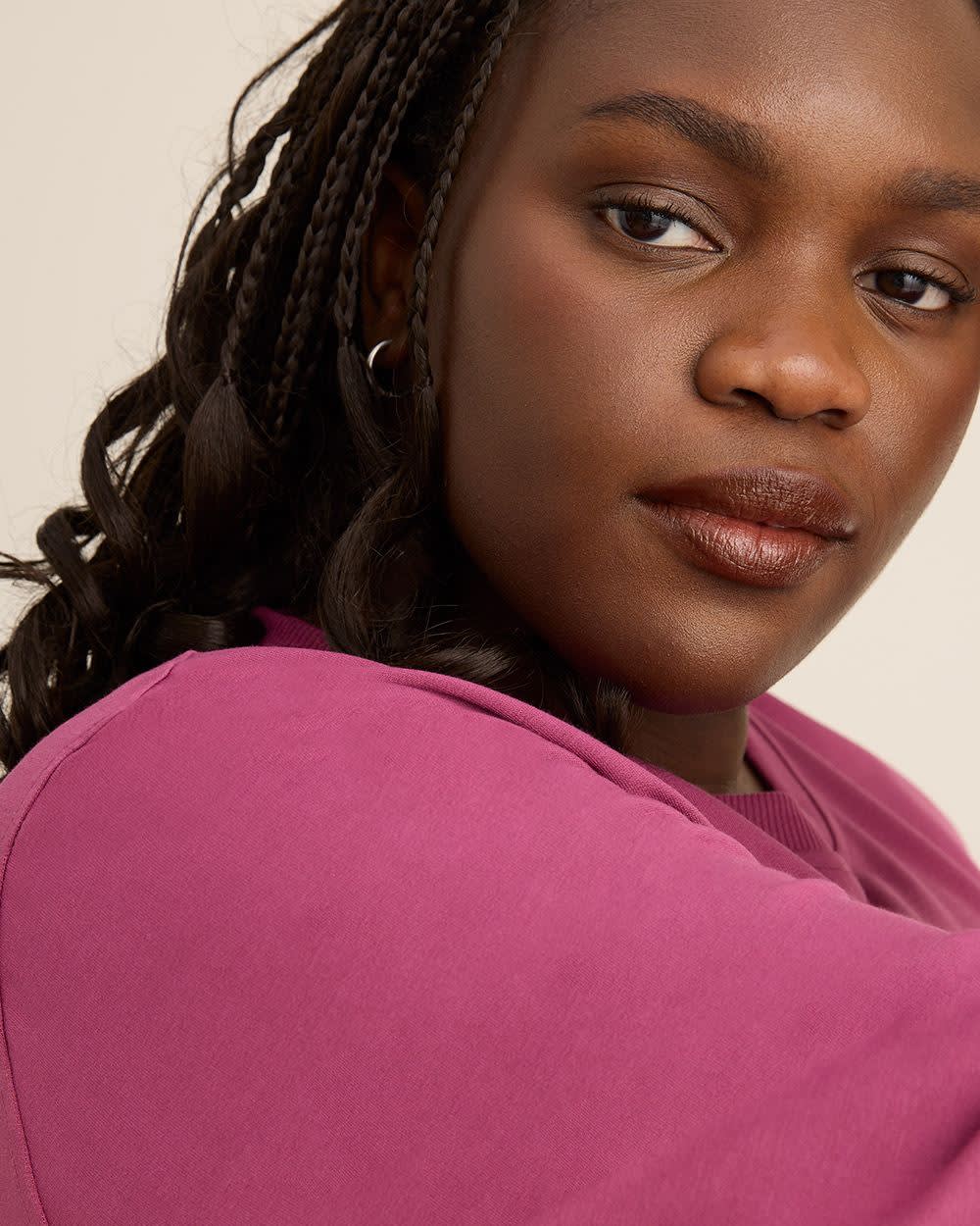 Fashioned with classic features like a crewneck and ribbed details, this plus-size boyfriend-fit sweatshirt is perfect to pair with leggings on casual days when you want to be comfortable without compromising your style.