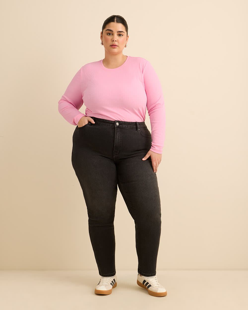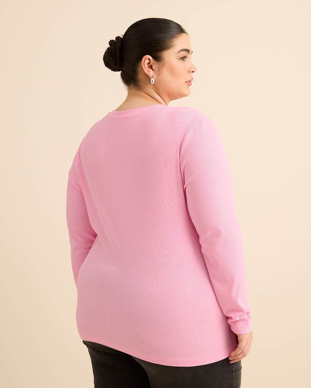 A staple long-sleeve t-shirt is a definite must-have in your year-round wardrobe. Perfect for layering with your favourite blazer or for wearing casually as is, this plus-size boyfriend-fit tee is made of ribbed knit for a touch of modern texture.