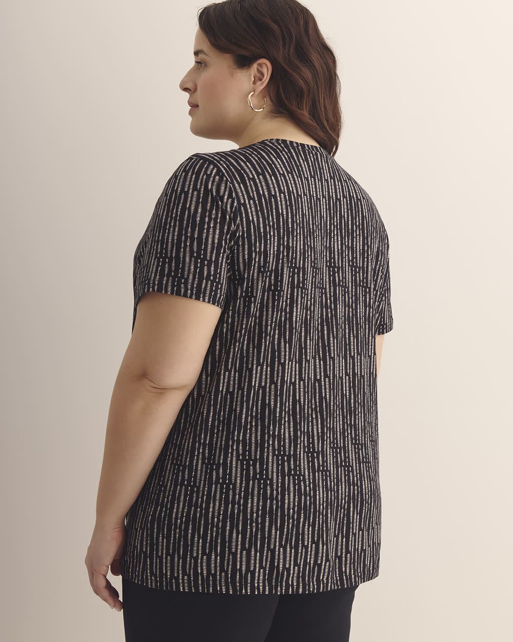 Classic, trendy and comfortable. This staple short-sleeve t-shirt is a definite must-have in your year-round wardrobe. Perfect for layering, this plus-size loose tee is made of cotton jersey in a wide range of colours and prints.