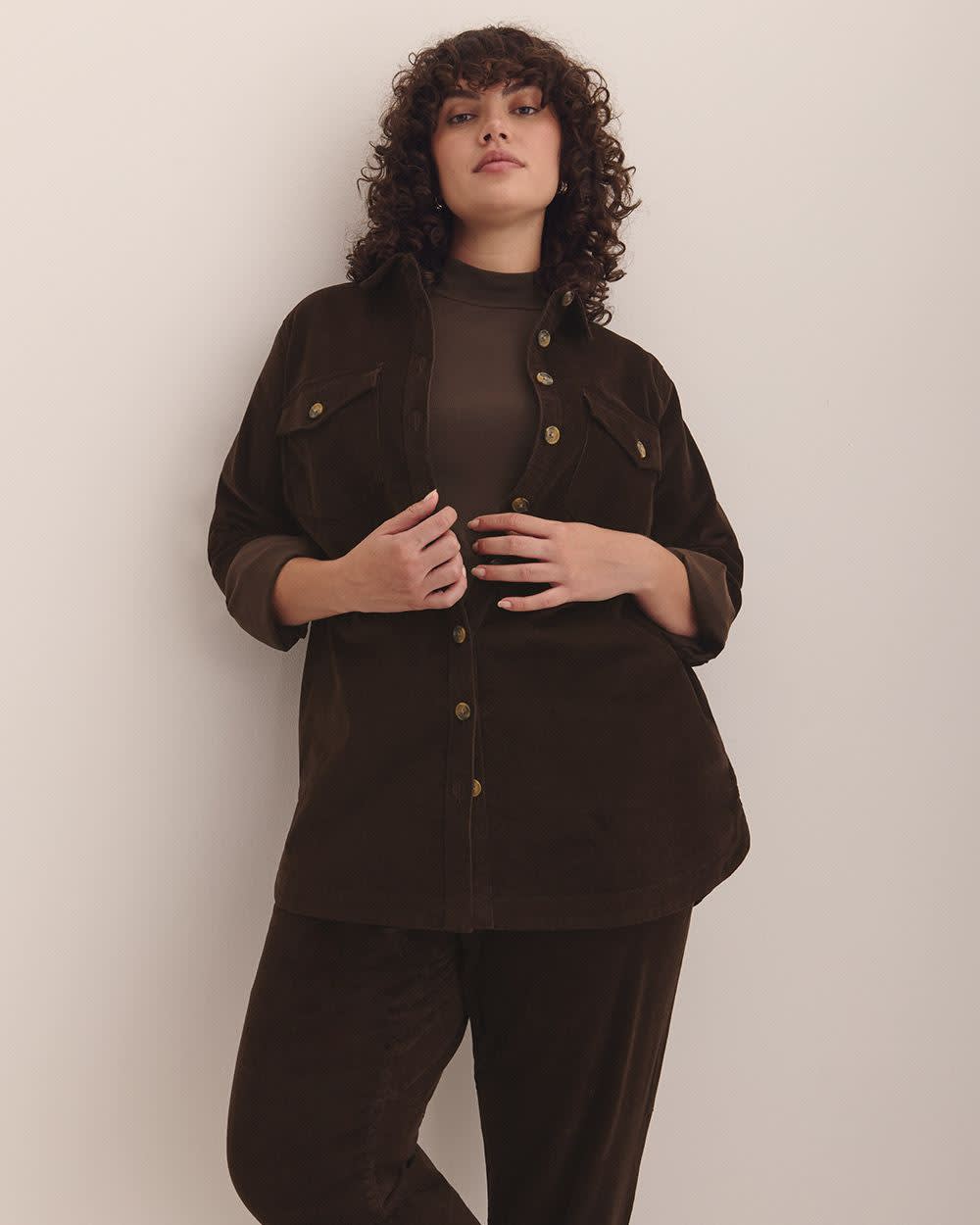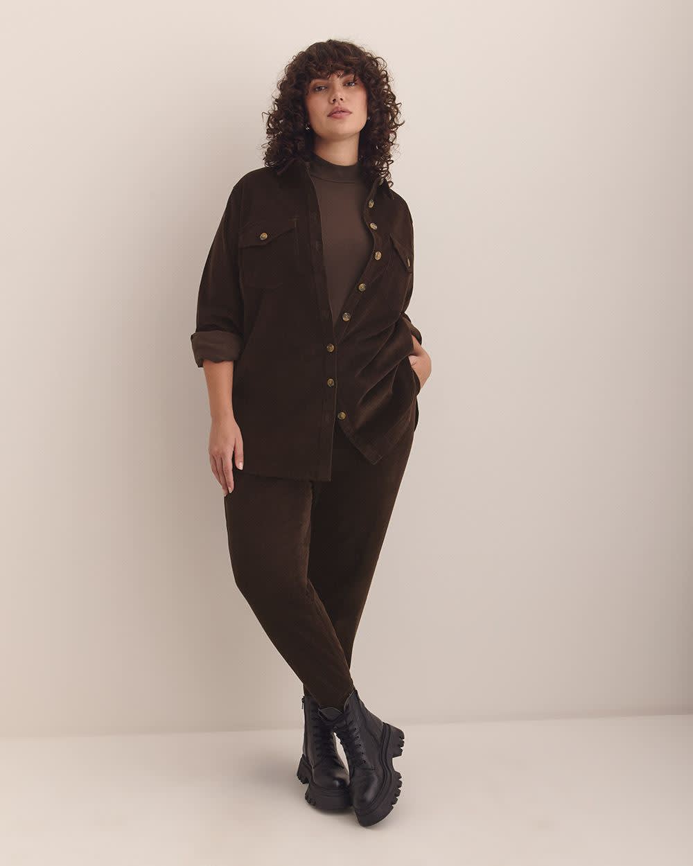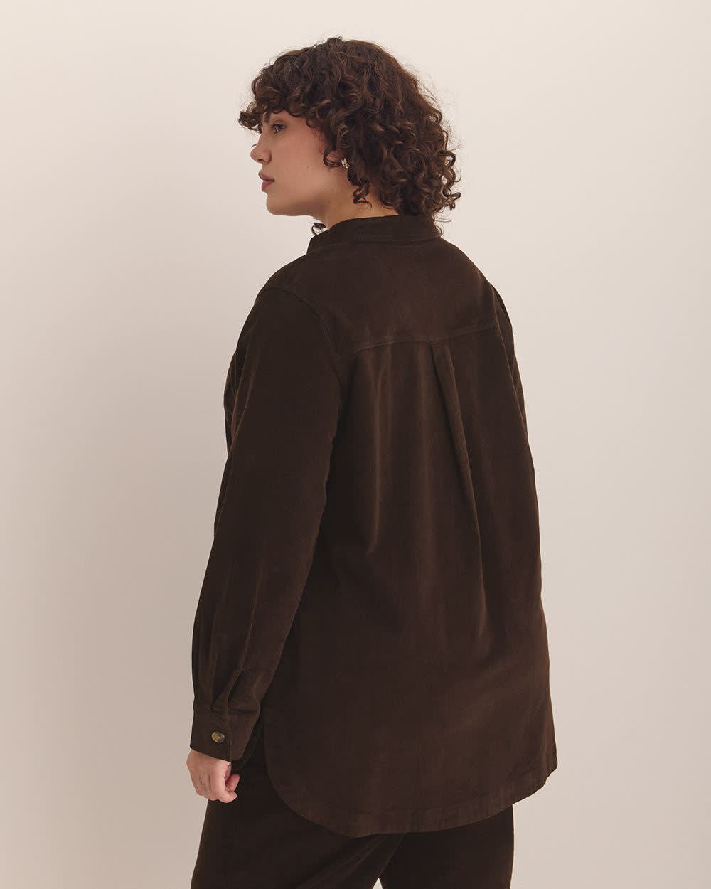 Get ready to level up your style with this stunning plus-size corduroy shirt. Crafted to revolutionize your fashion journey, this buttoned-down shirt not only embraces the latest trends but also adds a touch of casual chic to your look, whether paired to your go-to denim and an elegant top or to a sophisticated pencil skirt.