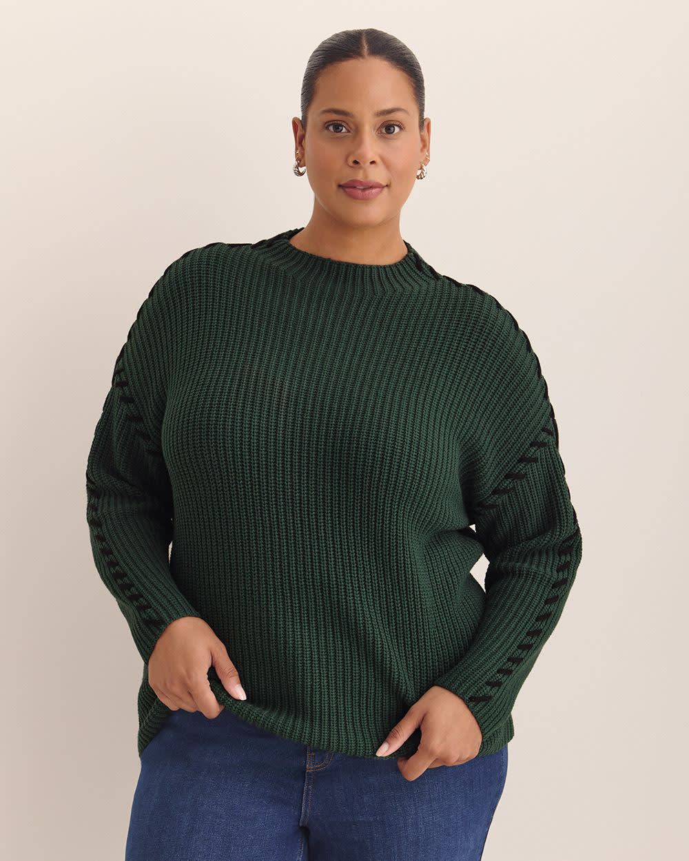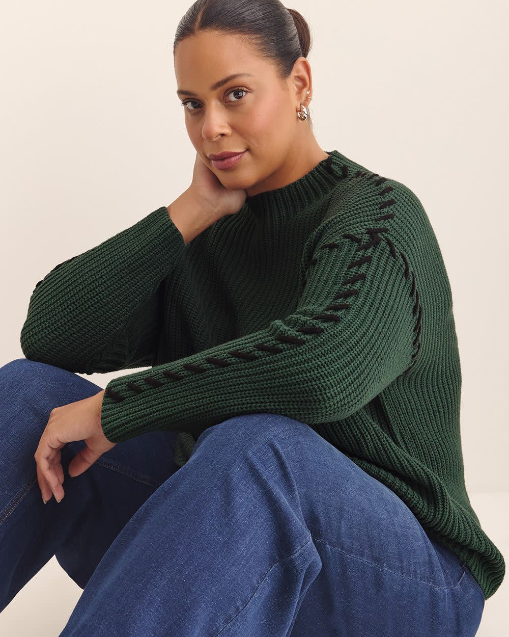 A classic sweater is a piece every woman needs. Fashioned with a cute whip stitch along the seams, this cozy pull-on sweater features a funnel neck to keep you warm and comfy all season long.