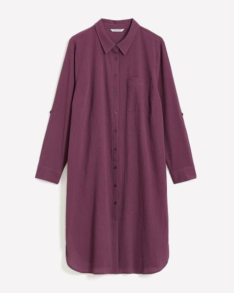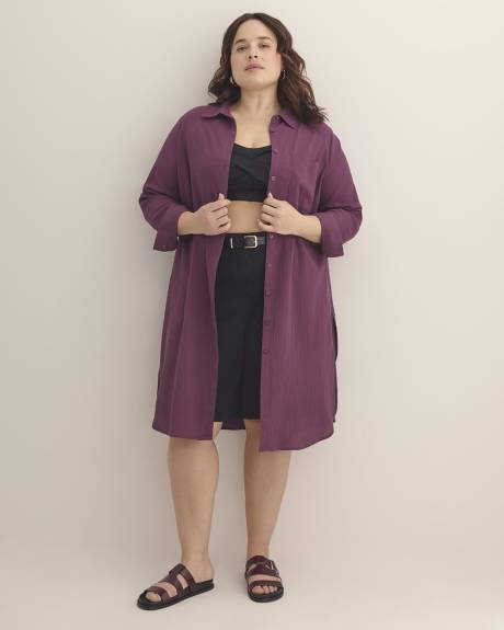 Lightweight and beautiful, this tunic-length plus-size shirt featuring a shirt collar is definitely an essential to add to your summer wardrobe for a quick and easy trendy style.