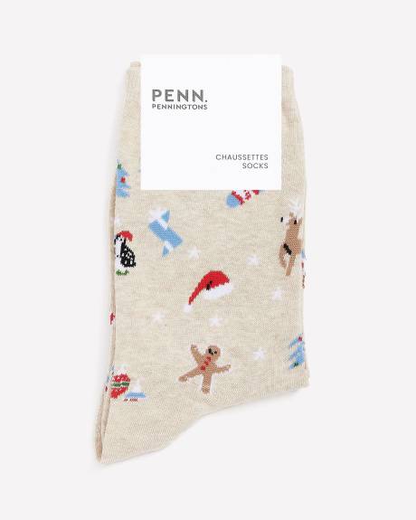 Cozy Crew Socks with Holiday Print
