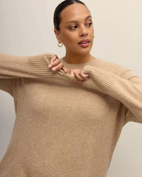 Classic coziness with a hint of uniqueness! This plus-size knit sweater is the perfect feel-good top for the colder days. Fashioned with a simple look, this sweater elevates your everyday looks with a fancy stitch design at the bottom hem. Subtle yet chic and stylish.