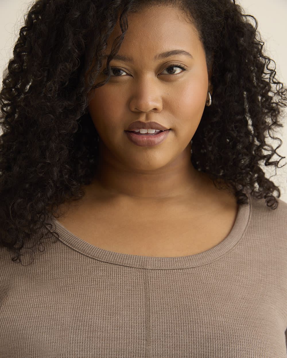 Curvy-Fit Long-Sleeve Waffle Tee - PENN. Essentials