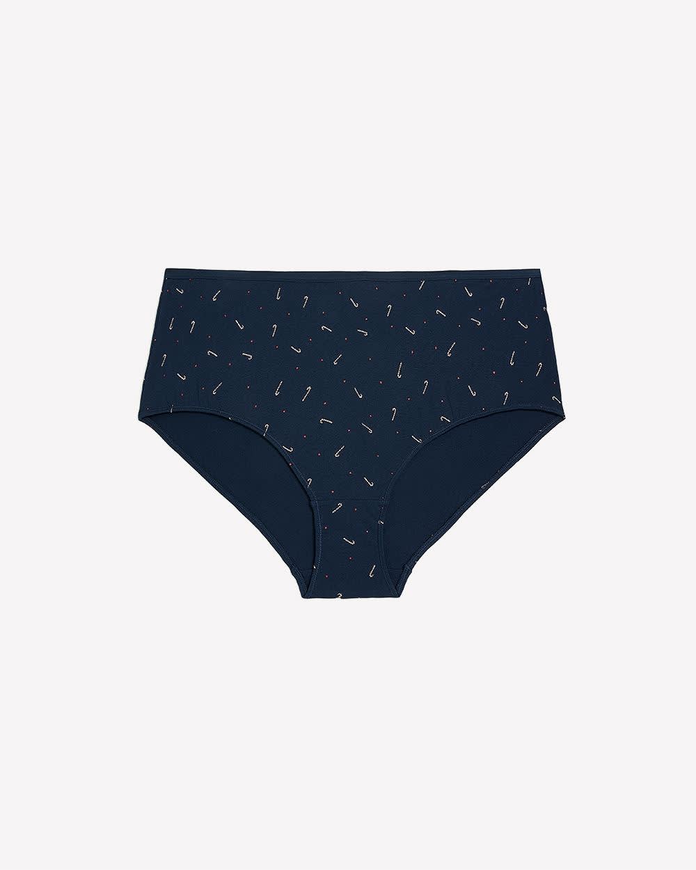 Soft, breathable, and stretchy-this plus-size full-coverage cotton brief features a festive candy cane print, a flat elastic waistband for everyday comfort, and fold-in elastic at leg openings for a smooth fit.