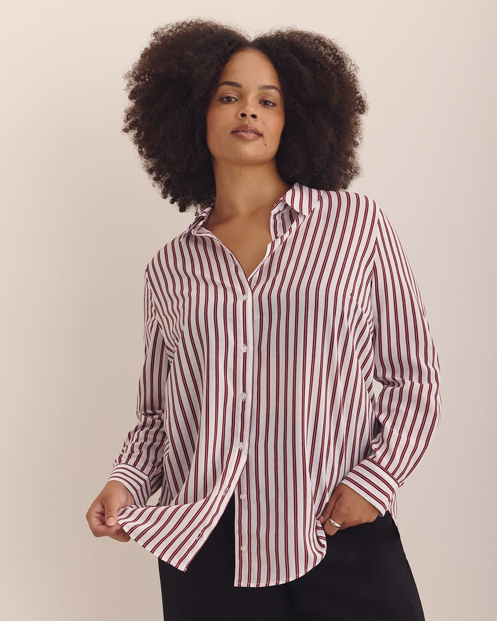 Who knew you needed a buttoned-down shirt that much? This plus-size tunic shirt is just perfect for you with all its classic details and trendy cut. Easy to pair with fashion leggings as a layering piece or tucked in your favourite jeans for a versatile outfit.