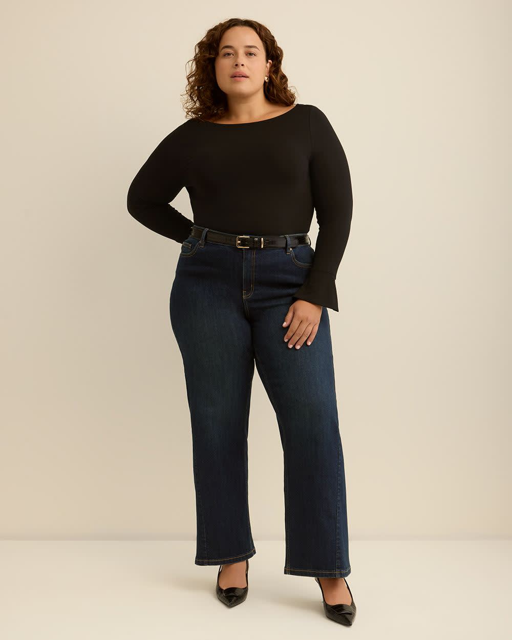 Draped Boatneck Long-Sleeve Top - Addition Elle