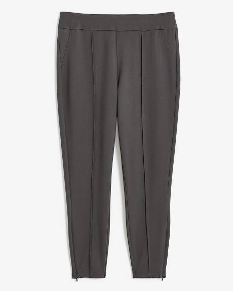 This plus-size legging pant is not just another classic solid legging. With its wide waistband, pintuck detail and zipped hem, these stretch essential pants made of soft ponte de Roma are a staple piece you can pair with all your favourite tops, whether you go to work, run errands, go out for the night or stay home and relax.