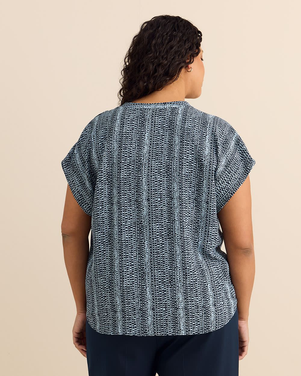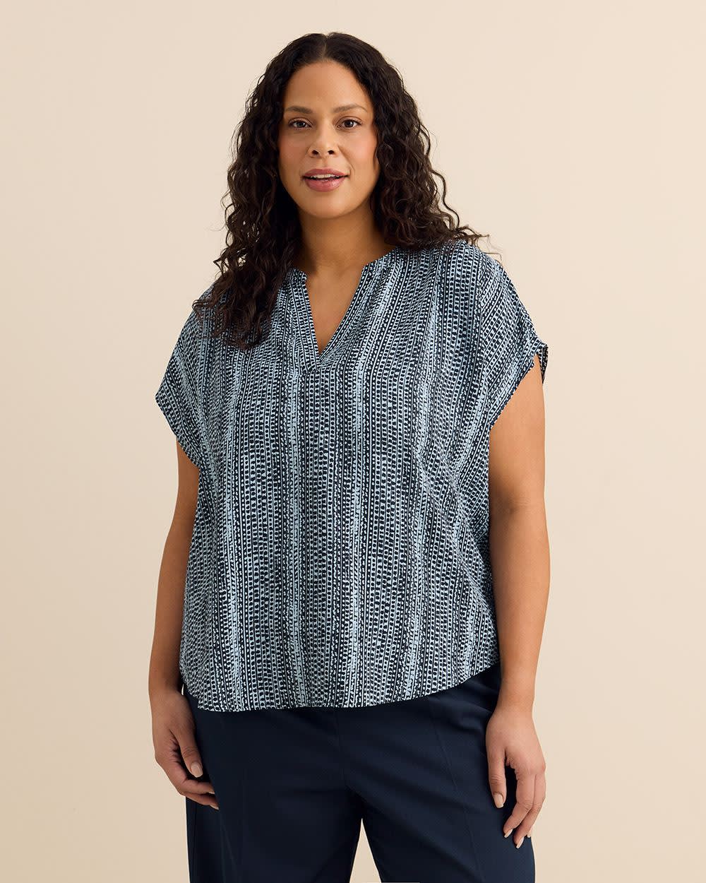 This plus-size blouse featuring a stylish split neckline will keep you looking stylish wherever you go. Designed with extended sleeves and a shirttail hem, this straight-fit shirt will pair well with any bottom in your wardrobe.