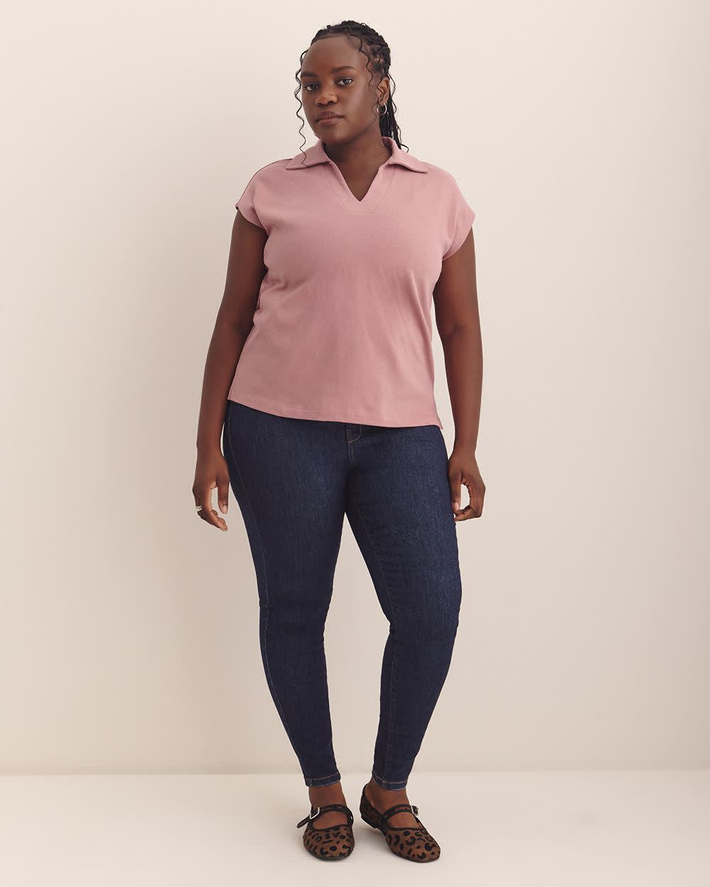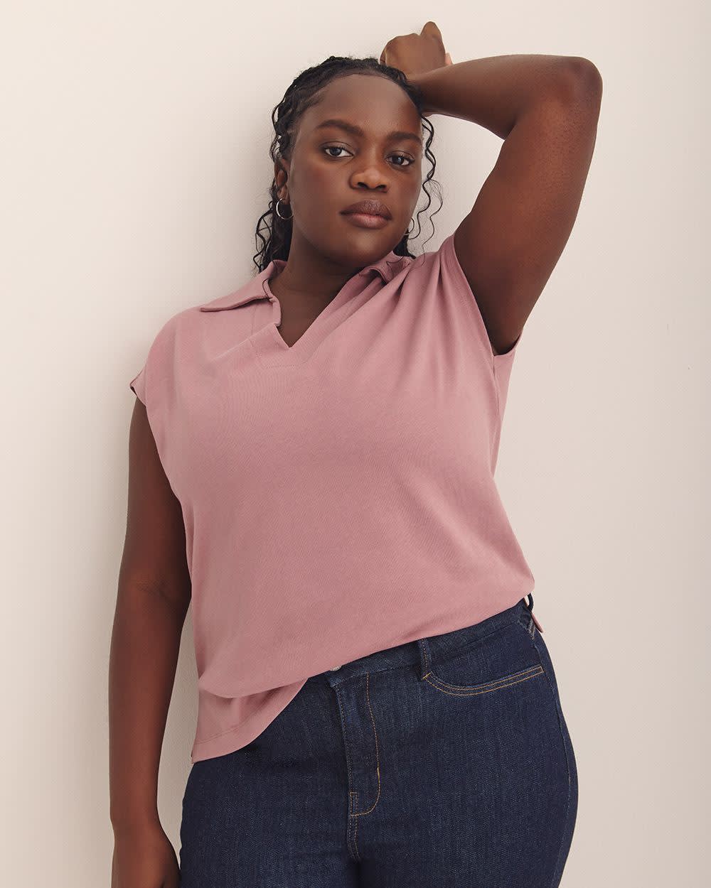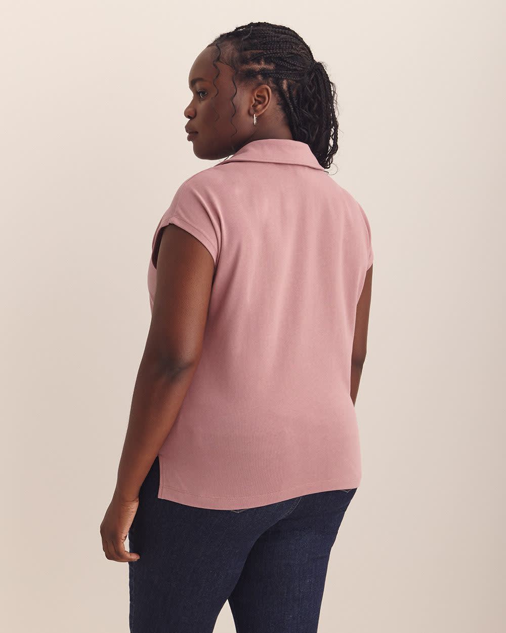 Perfect on its own or peeking out from under a cardigan or a sweater, this plus-size polo is versatility personified. Wear this with trousers or a skirt and a pair of mid-heel shoes for a great office look.