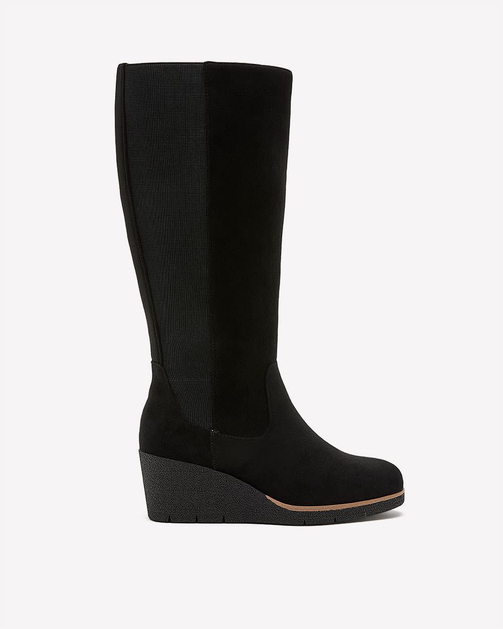 Extra Wide Width and Wide Calf, Faux Suede Wedge Tall Boot