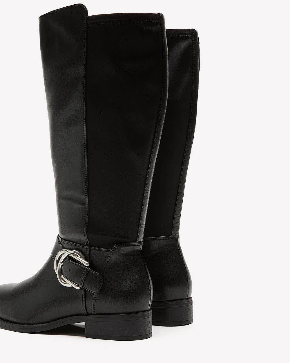 Extra Wide Width, Tall Black Faux Leather Boot with Buckle