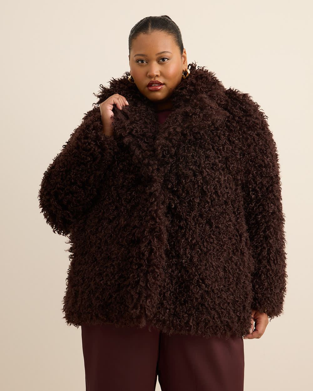 ONLINE EXCLUSIVE. For elegance that stands the test of time. This plus-size buttoned faux-fur coat is just the right mix of cozy, warmth and style with soft preppy details.