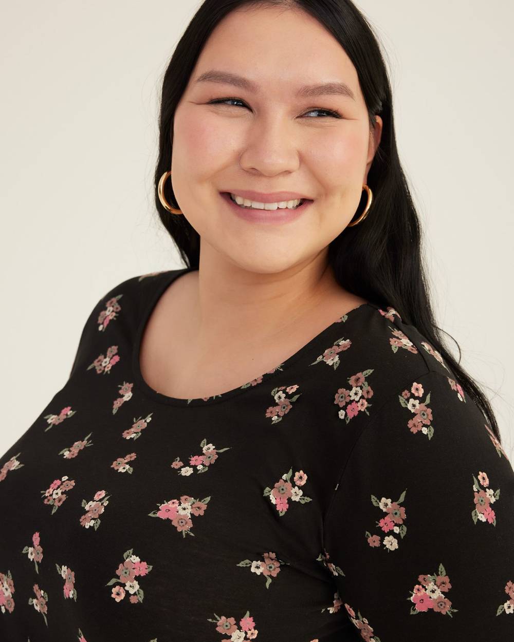 Simple and comfortable with its solid colour and crewneck, this plus-size girlfriend-fit knit top is a staple piece from fall to spring.