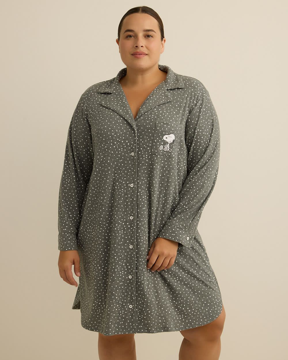 Love Snoopy? Featuring a buttoned-down front, this plus-size pyjama sleepshirt is made of a super soft knit finish adorned with a cute Snoopy print on the chest pocket. Perfect for your unwinding time and for a good night's sleep.