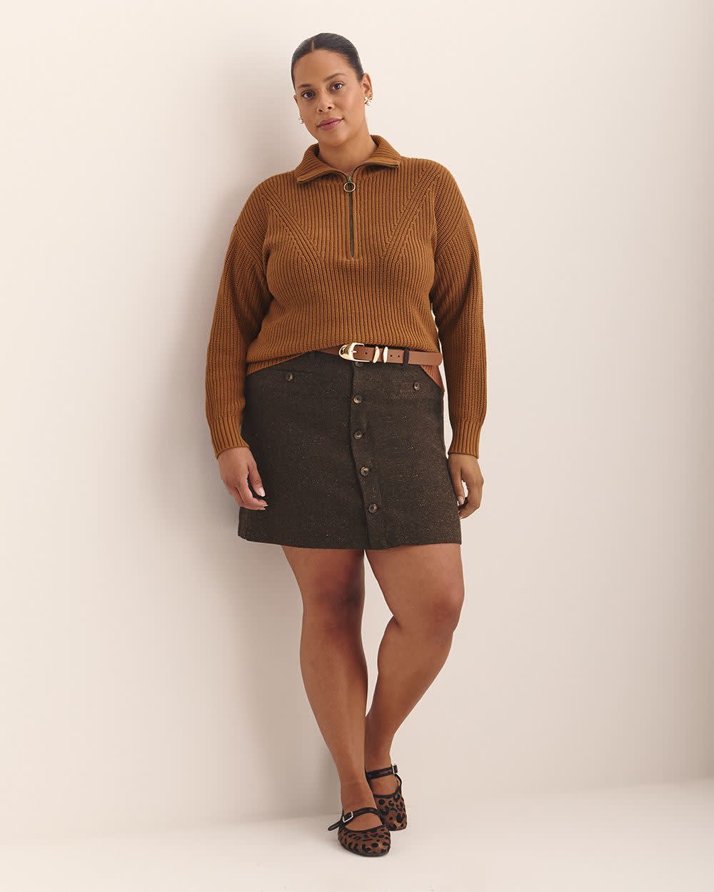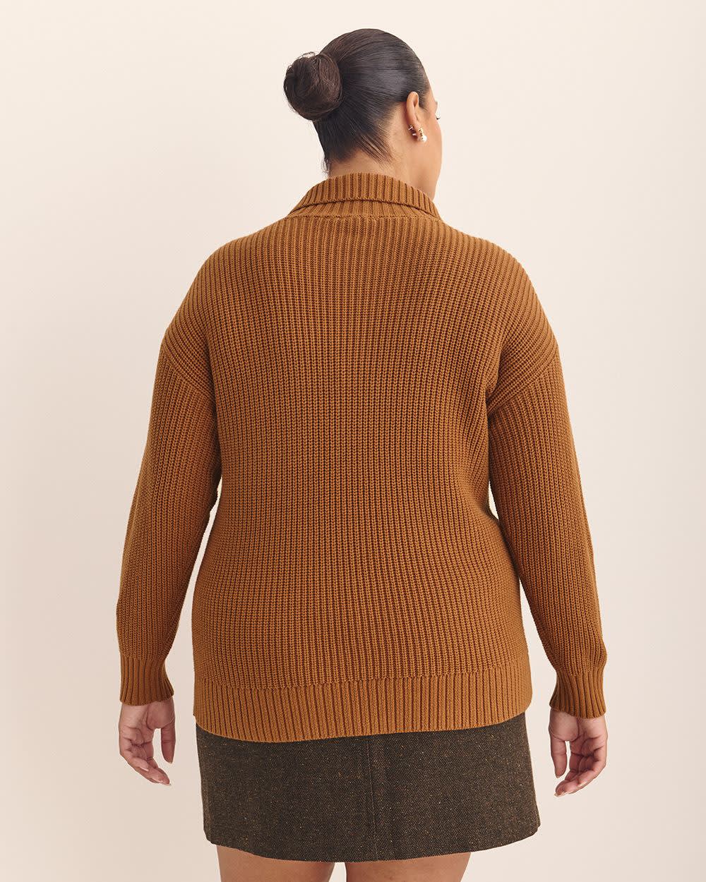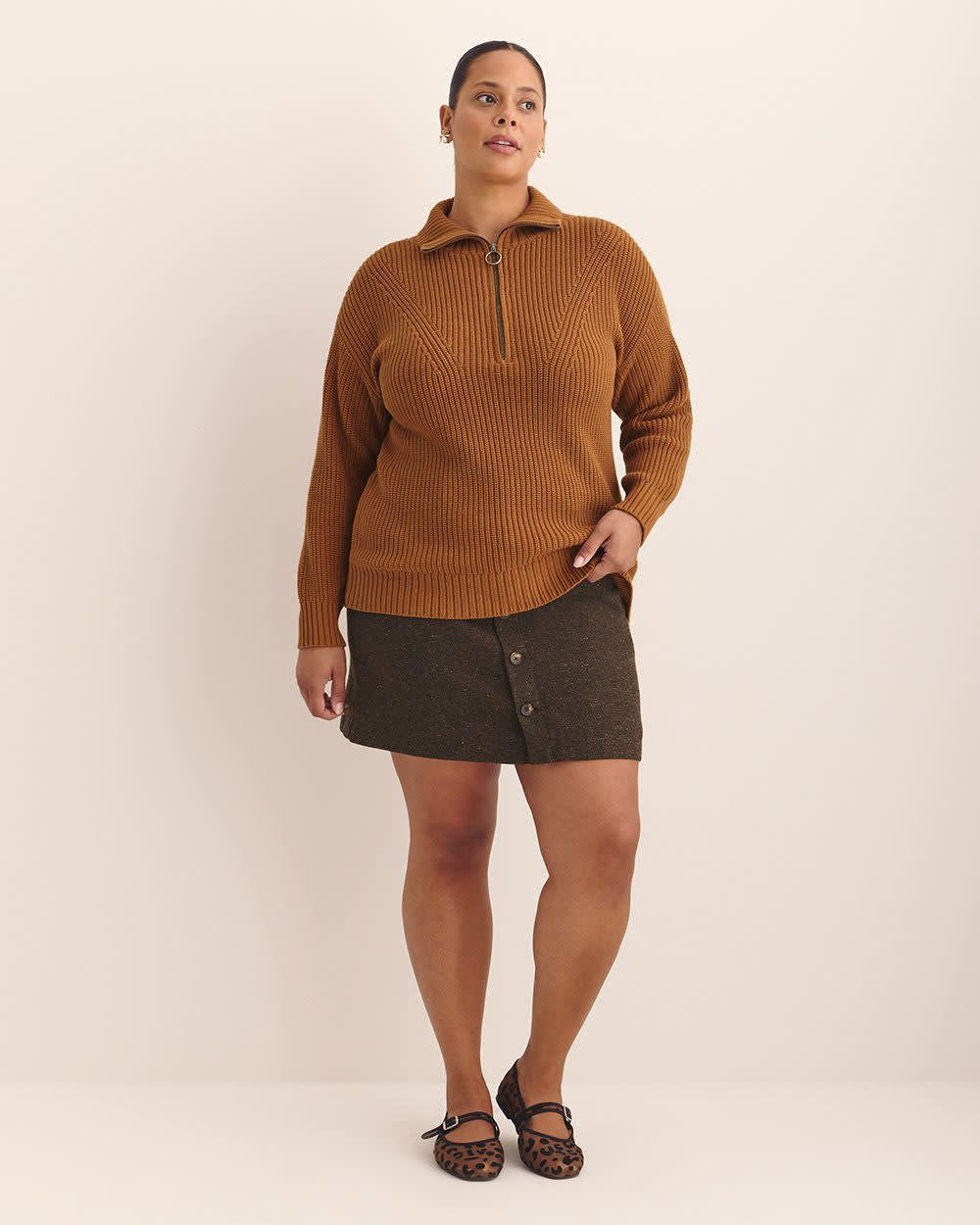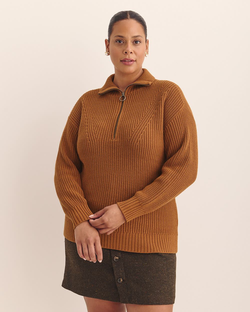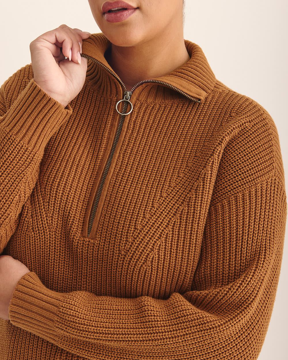 Soft, cozy, stylish. This warm half-zip collared knit sweater adorned with shaker stitch details is your fall/winter must-have for a feel-good piece you'll want to wear with everything.