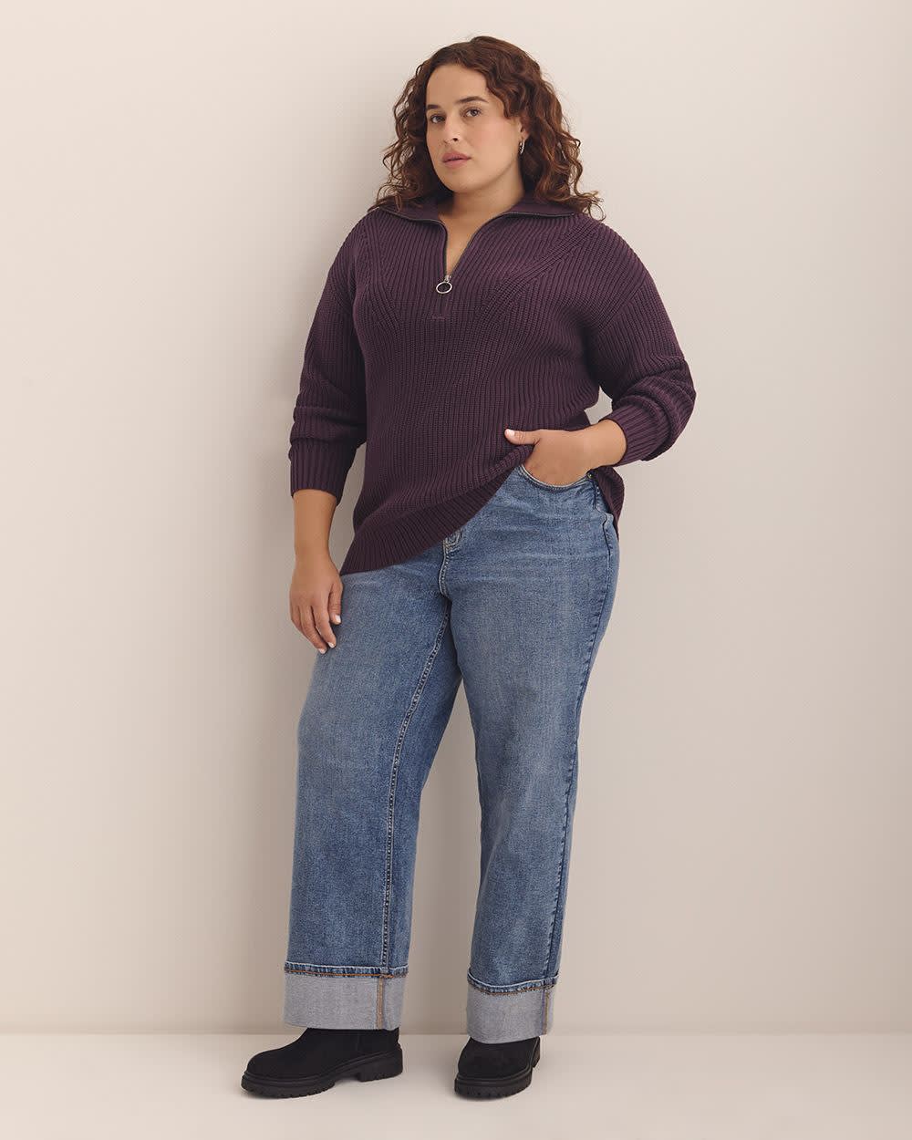- Half-zipped ribbed collar