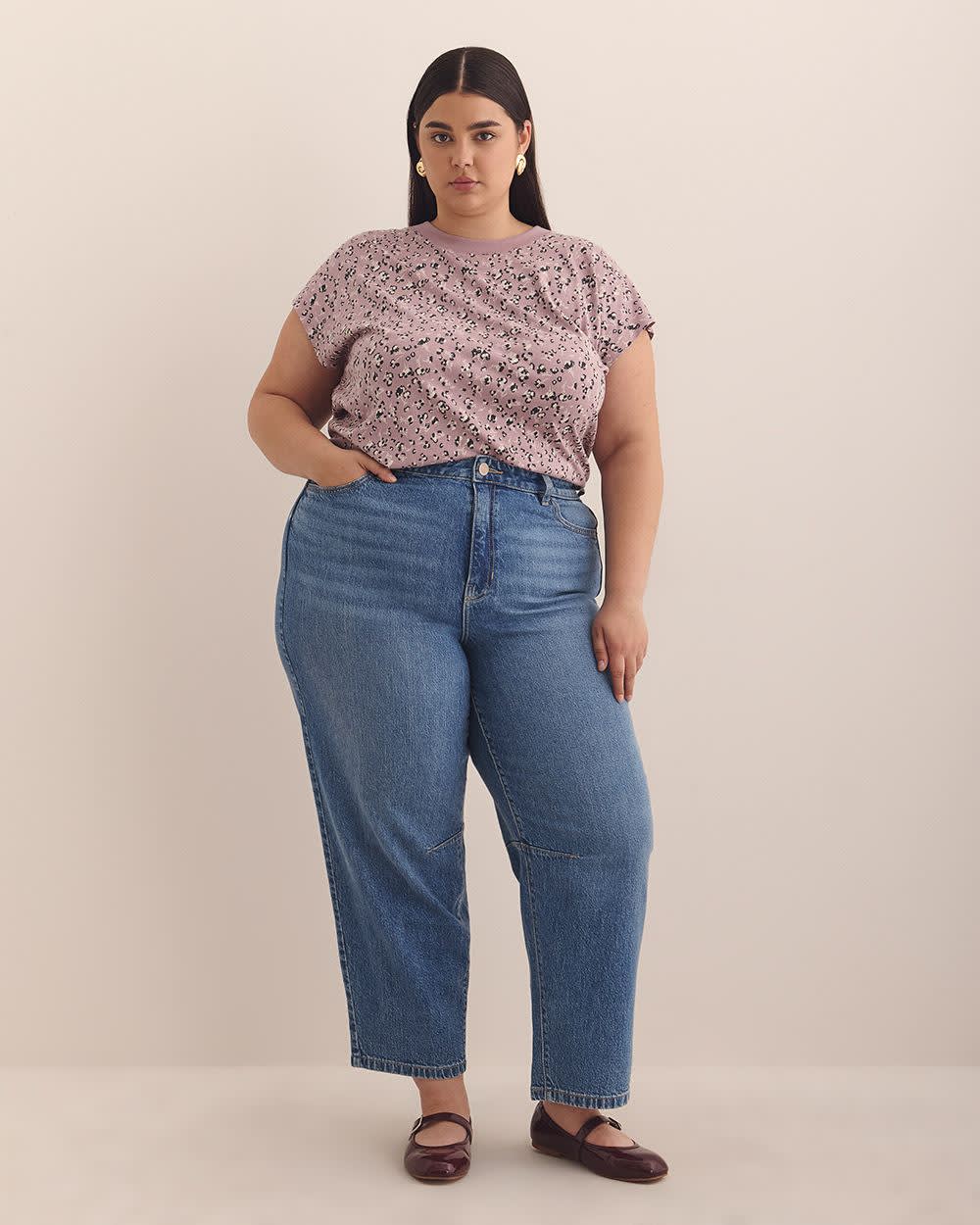 Upgrade your denim collection with these plus-size jeans, designed in a stretch denim finish for comfort and flexibility. The high-rise waist and barrel-leg silhouette create a modern, structured look, while the medium wash gives them a versatile, laid-back feel. Finished with a 5-pocket design and ankle-length cut, these jeans are perfect for effortless styling.