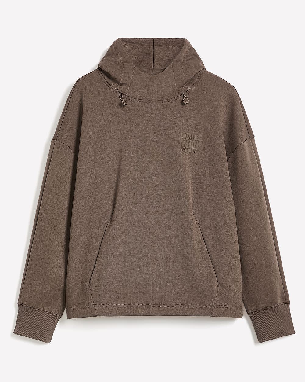 Keep it cool and comfy in this plus-size hooded fashion sweatshirt. With a stopper drawcord, hidden kangaroo pocket, and ribbed cuffs, it's a laid-back essential with a sleek finish.