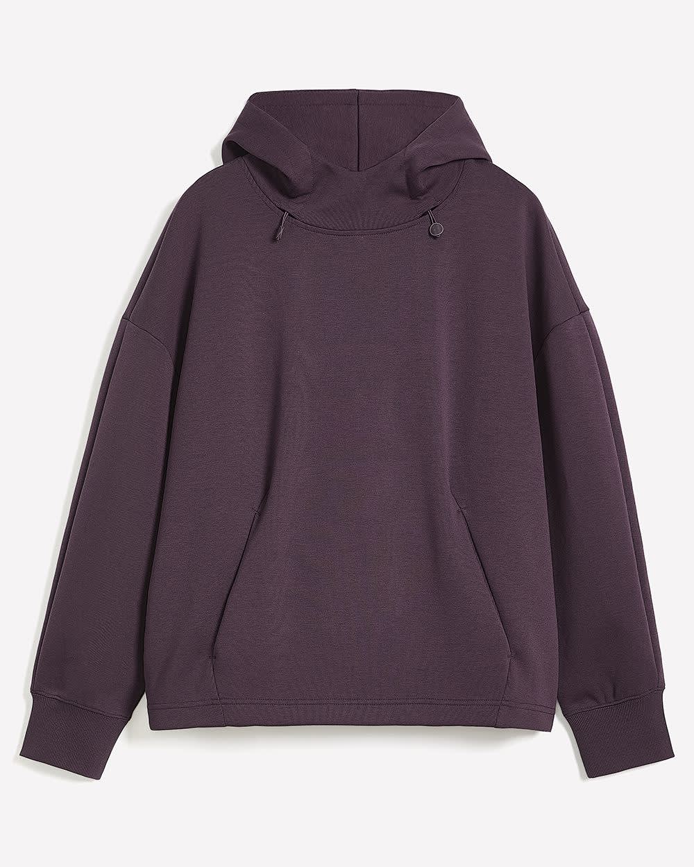 Keep it cool and comfy in this plus-size hooded fashion sweatshirt. With a stopper drawcord, hidden kangaroo pocket, and ribbed cuffs, it's a laid-back essential with a sleek finish.