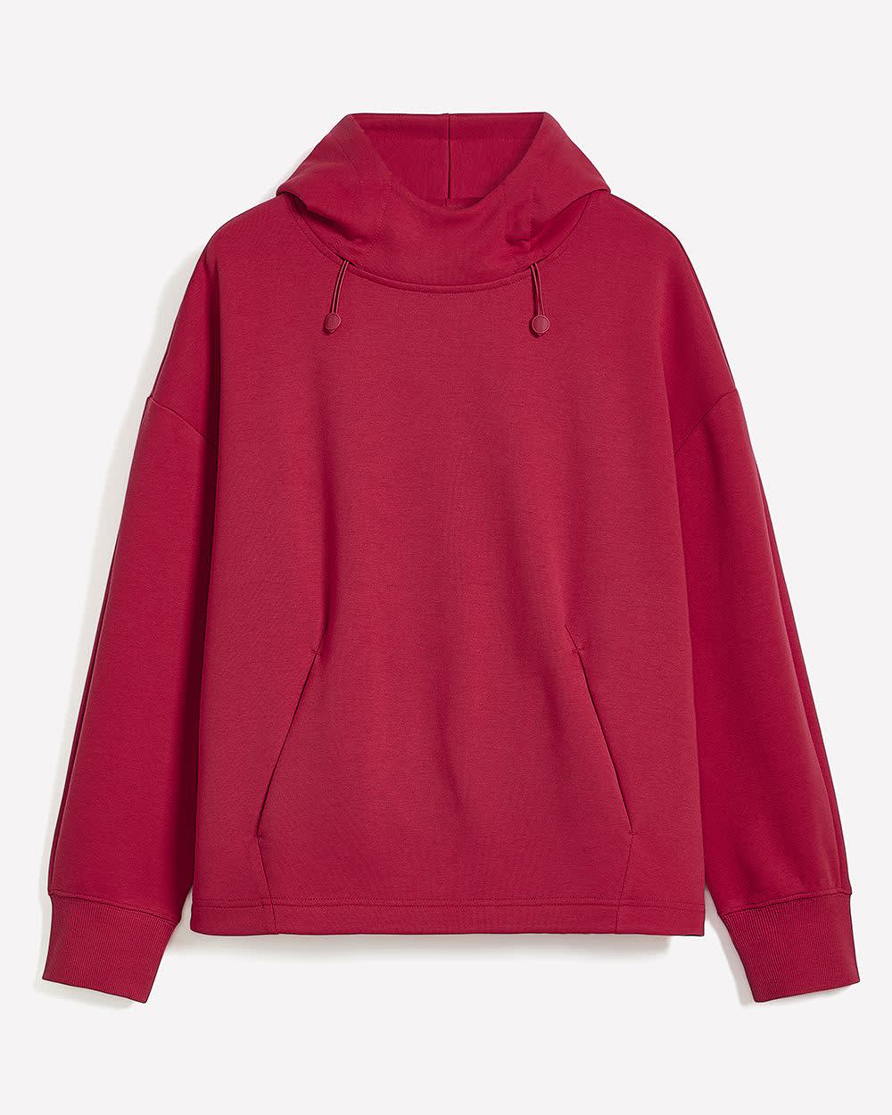 Keep it cool and comfy in this plus-size hooded fashion sweatshirt. With a stopper drawcord, hidden kangaroo pocket, and ribbed cuffs, it's a laid-back essential with a sleek finish.