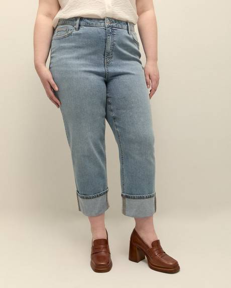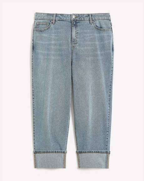 With Spring comes light denims! Welcome the warmer seasons with these plus-size cropped jeans made of light wash denim. Fashioned with a trendy straight leg with a rolled hem, these high-rise pants are perfect to pair with your favourite sneakers and step into the weekend in style!